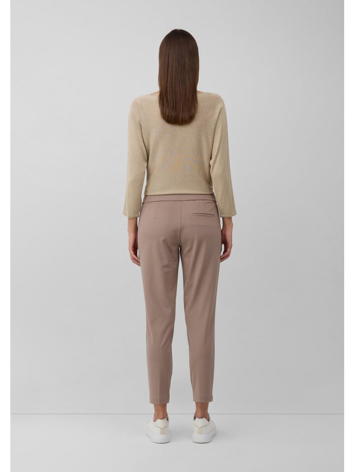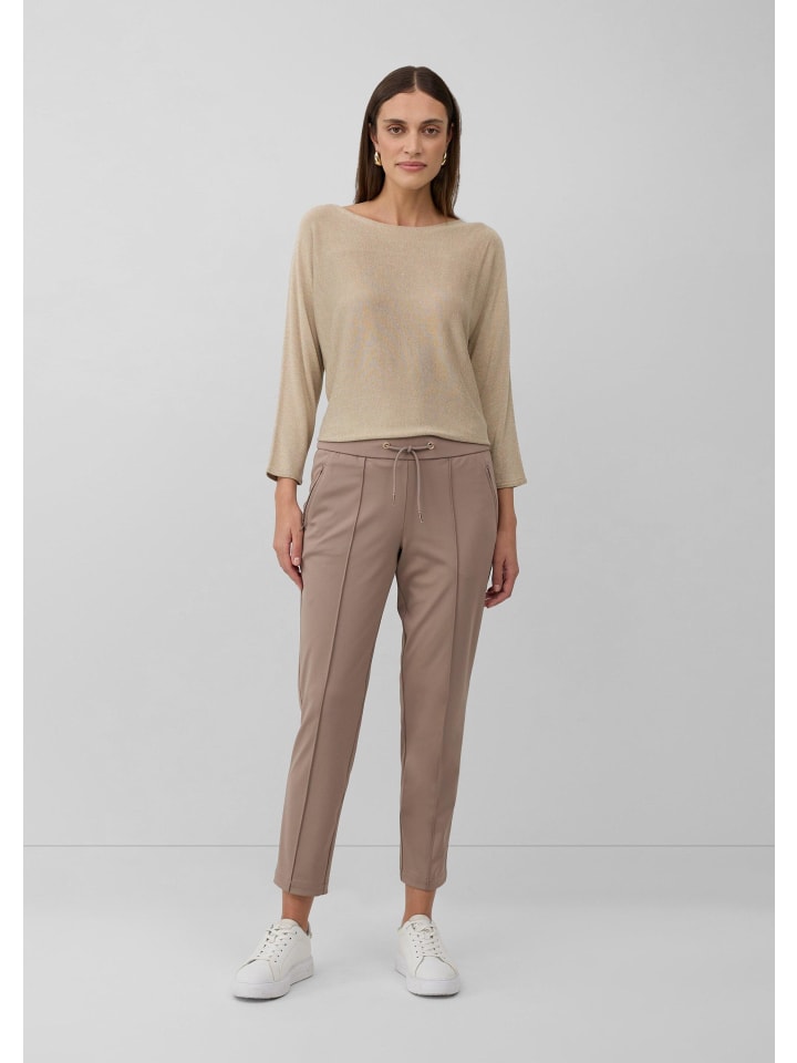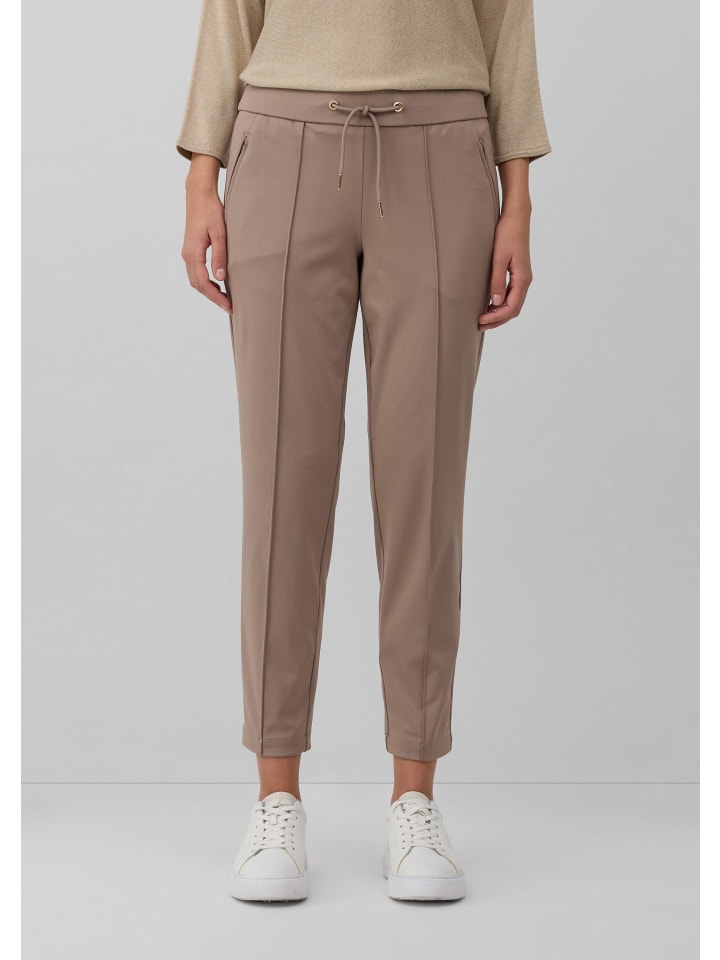 Стильный повседневный стиль и комфорт: эти спортивные брюки из эластичного трикотажа интерлок станут вашим идеальным спутником для расслабленных дней. Благодаря элегантному узким брючинам и средней посадке на талии, они подчеркнут вашу фигуру. Изящные складки и практичные карманы сочетают функциональность с современным дизайном. Будь то отпуск или просто мероприятие - вы всегда будете стильно одеты.