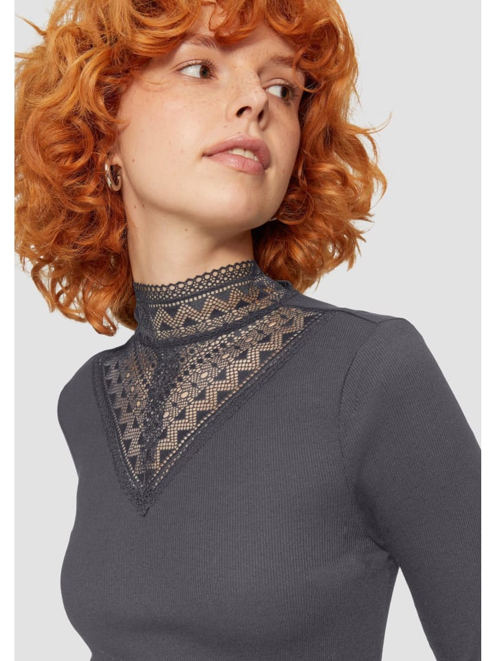 Ваш новый фаворит для стильных образов: рубашка в рубчик с кружевом и воротником-стойкой. Мягкая, эластичная и женственная - идеально подходит для повседневной носки и особых случаев. Облегающий крой и застежка на пуговицы делают ее стильным must-have в вашем гардеробе.