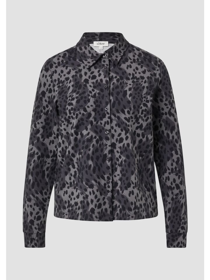 Эта повседневная трикотажная блузка с леопардовым принтом сочетает в себе комфорт и стиль. Мягкая хлопковая ткань приятна на ощупь, а удлиненный подол сзади и классический рубашечный воротник добавляют элегантности повседневному образу.