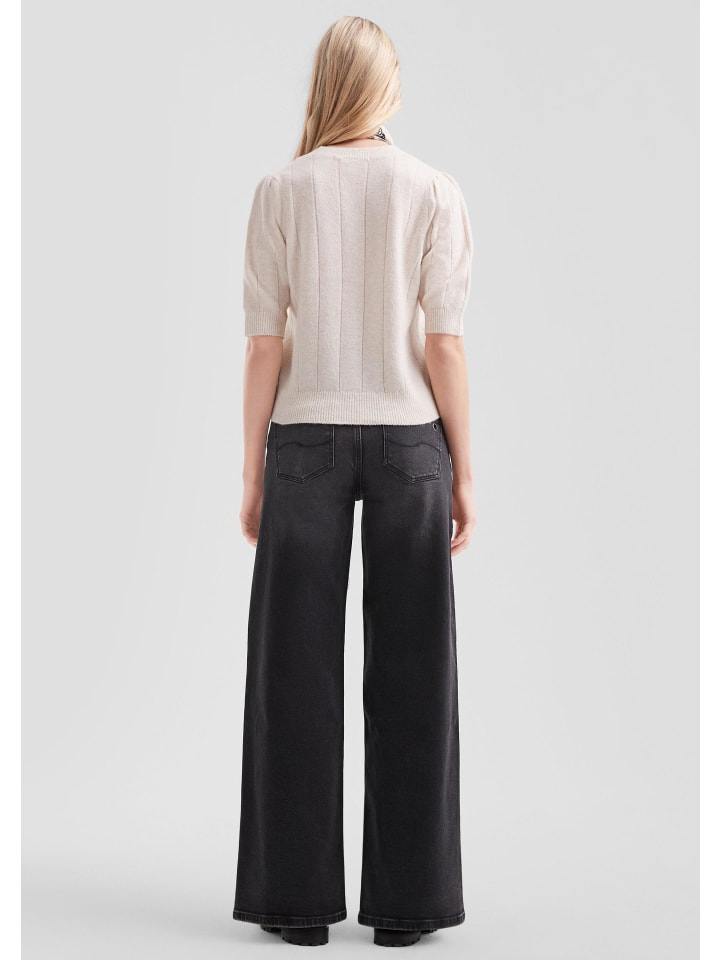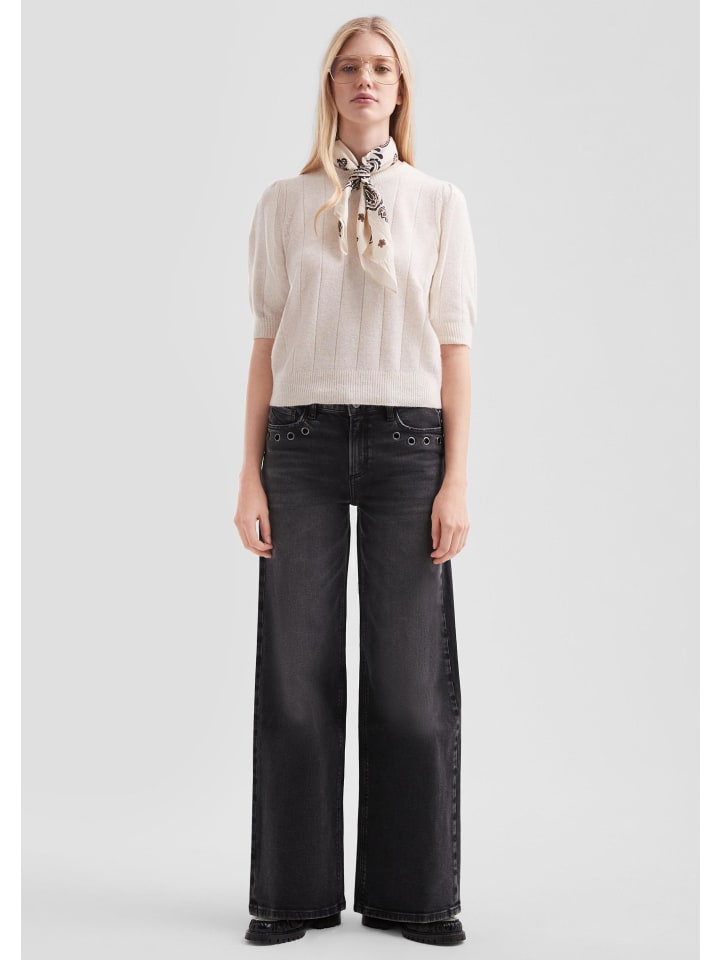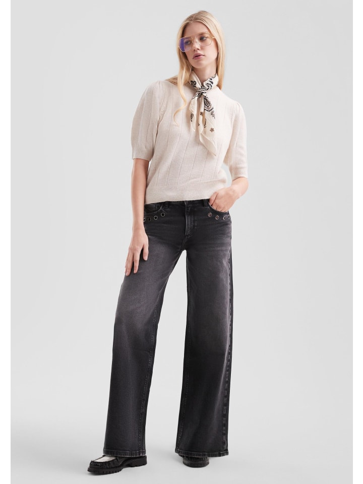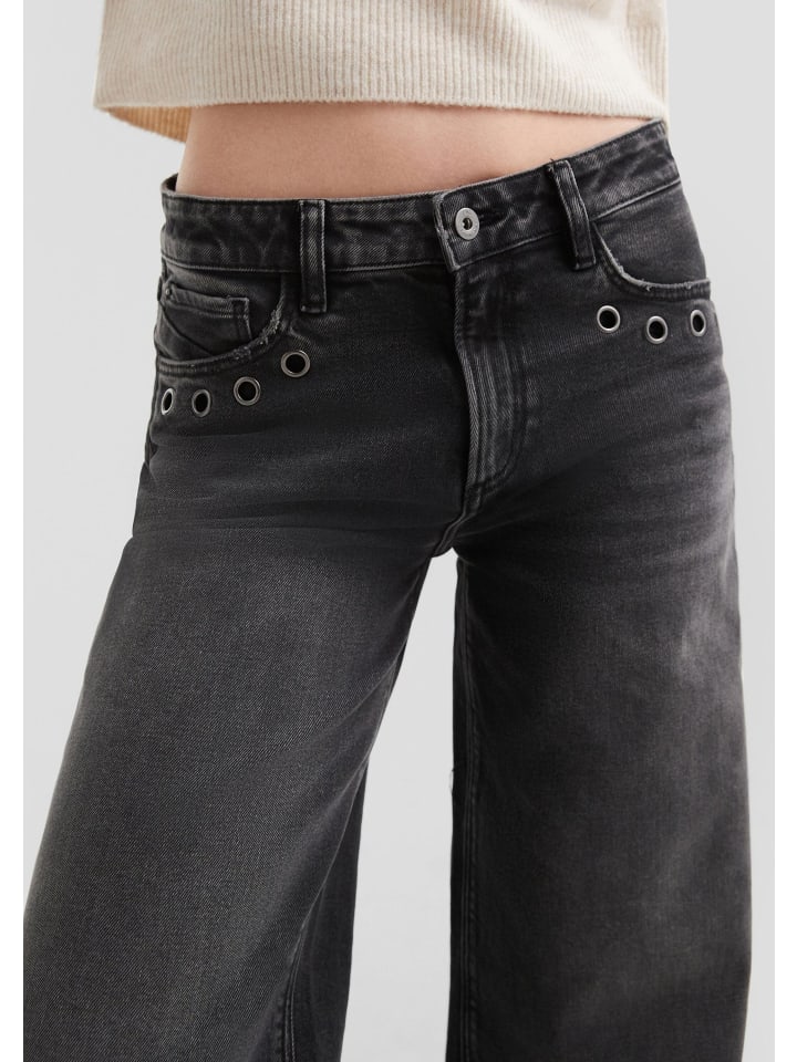 Джинсы Catie: стильный и универсальный вариант для создания стильных образов. Облегающий крой, широкие штанины и высокая посадка - идеальное дополнение к вашему индивидуальному стилю. Благодаря эффекту потертости и люверсам вы готовы к любым приключениям.