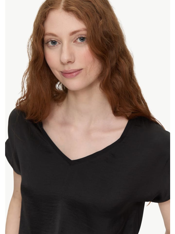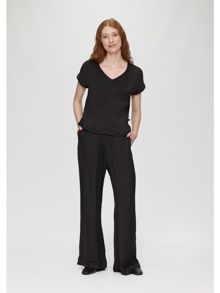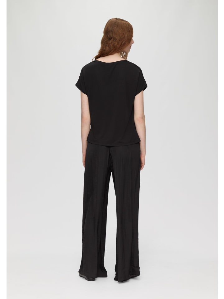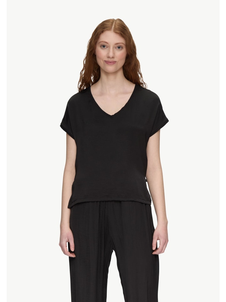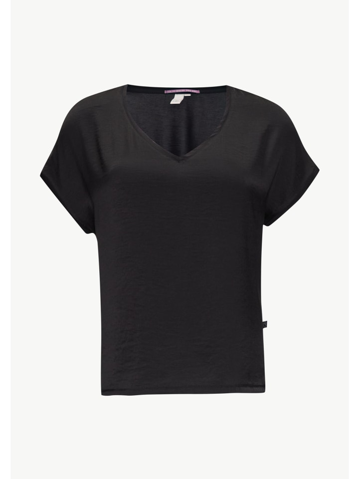 Ваш повседневный спутник для крутых моментов: футболка из смеси тканей свободного кроя с V-образным вырезом. Мягкая синтетическая ткань с добавлением вискозы и эластичной резинки - идеальный вариант для повседневной жизни. Рукава «летучая мышь» и разрез по низу создают стильный образ.