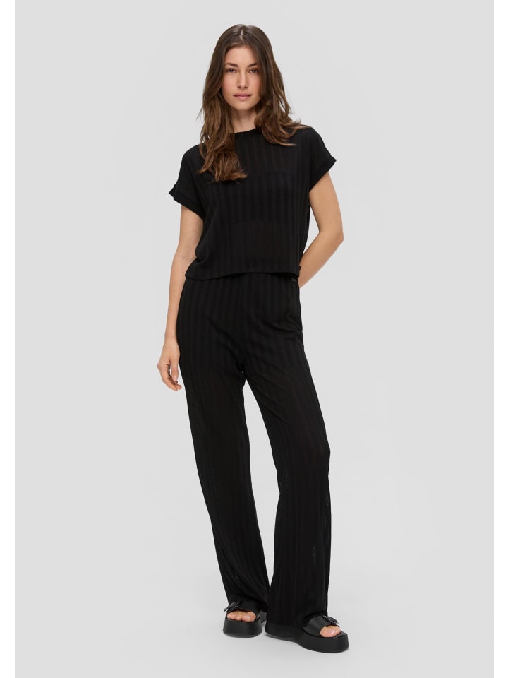 Стильные и удобные: эти полупрозрачные брюки с текстурированным узором - ваш новый фаворит для стильных повседневных образов. Эластичный пояс и свободный крой обеспечивают максимальный комфорт. Идеально подходят для расслабленных дней и вечеров с друзьями.