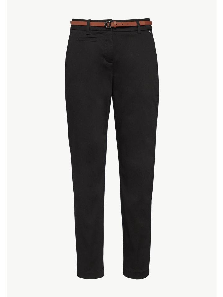 Ваш новый летний фаворит: эти облегающие брюки 7/8 из эластичной ткани покоряют своей классической элегантностью. Благодаря зауженным брючинам и длине до щиколотки они выгодно подчеркивают фигуру. Боковые карманы и ремень из искусственной кожи добавят непринужденности. Сочетайте их с каблуками для создания женственного офисного образа или с кроссовками для непринужденного и повседневного образа.