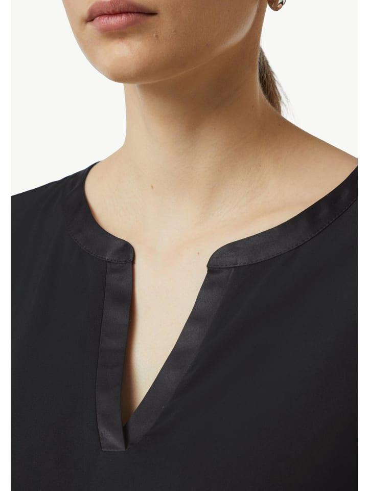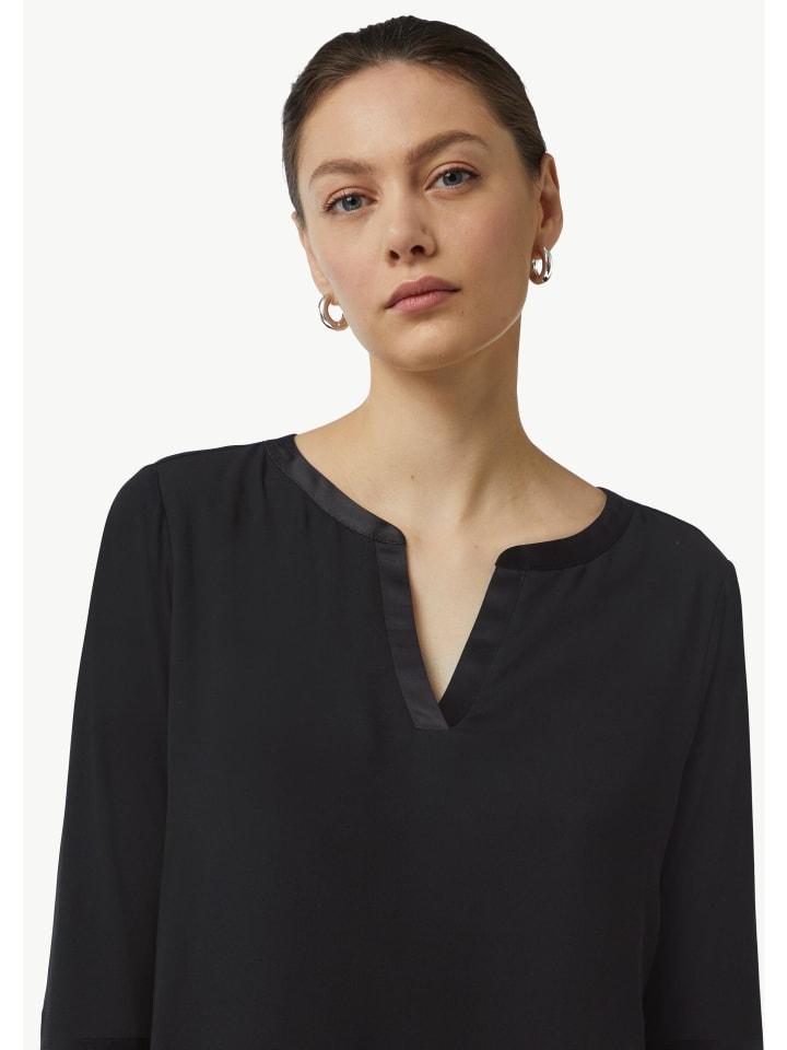 Инновационная смесь тканей и женственный туникообразный вырез придают этой рубашке современный вид. Рукава три четверти обеспечивают максимальный комфорт и делают ее идеальным вариантом для переходного периода. Носите ее непринужденно с джинсами или элегантно с юбкой-карандаш - эта футболка станет вашим универсальным решением на любой случай.