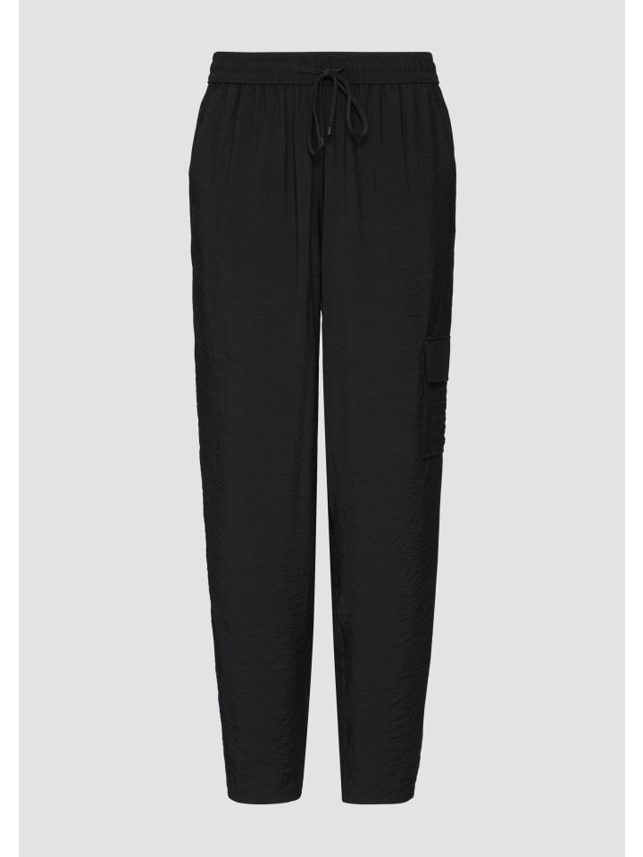 Повседневные и стильные брюки-джоггеры из структурированной вискозы для непринужденного и повседневного образа. Удобный эластичный пояс со шнурком и практичные карманы-карго делают эти струящиеся, легкие брюки идеальным повседневным спутником.