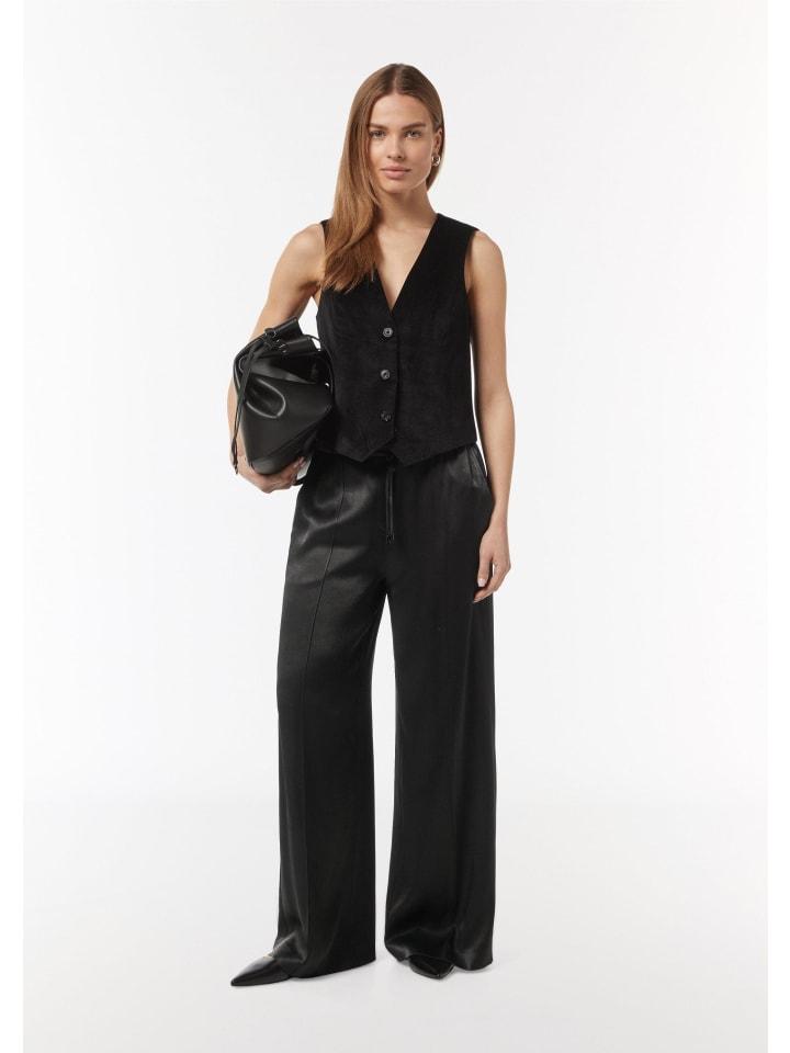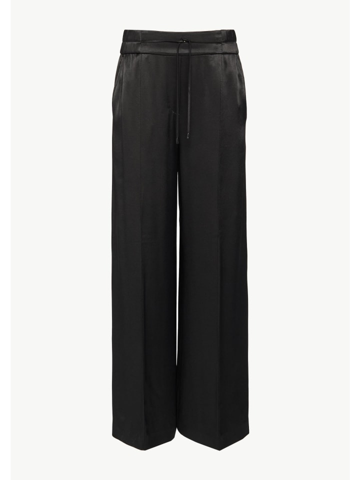 Элегантные атласные брюки из 100% вискозы сочетают в себе комфорт и стиль. Эластичный пояс и свободный крой гарантируют свободу движений, а струящаяся ткань добавляет нотку роскоши. Эти брюки с практичными боковыми карманами идеально подходят для повседневных, но элегантных случаев. Сочетайте их с блузкой для создания изысканного образа или с футболкой для непринужденного стиля.