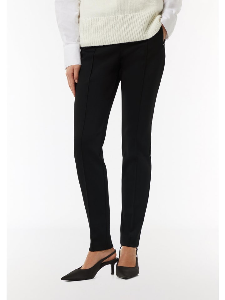 Спортивно-элегантные и универсальные: эти облегающие брюки-трубы с эффектом скубы впечатляют своим современным видом. Узкий крой и стандартные брючины подчеркивают фигуру, а практичные карманы на молнии обеспечивают дополнительную функциональность. Эти брюки идеально подходят для повседневного образа, их можно носить как днем, так и вечером. Сочетайте их с кроссовками для создания непринужденного повседневного образа или с туфлями-лодочками для создания шикарного образа.