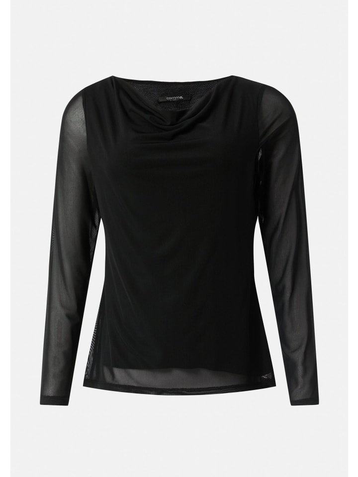 Откройте для себя нашу изысканную рубашку с длинными рукавами облегающего кроя. Высококачественный сетчатый материал придает рубашке воздушную текстуру и обеспечивает максимальный комфорт. Женственный вырез «водопад» добавляет стильный штрих, а мягкая трикотажная подкладка приятна для кожи. Носите ее по-разному: с джинсами или элегантно под блейзером - эта рубашка станет вашим идеальным спутником на все случаи жизни.
