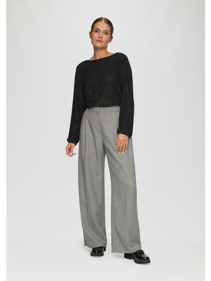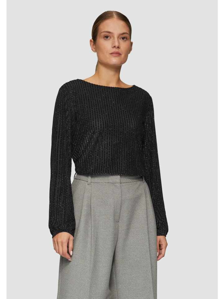 Сверкающая элегантность и комфорт! Этот струящийся топ с длинными рукавами, блестящими полосками и выжженным узором станет вашим идеальным спутником на вечеринке. Круглый вырез горловины и классический крой подчеркнут любую фигуру. Изготовленный из мягкого бархата, он приятно прилегает к коже. Сочетайте его с кожаными брюками для создания гламурного вечернего образа или надевайте с джинсами для непринужденного завтрака.