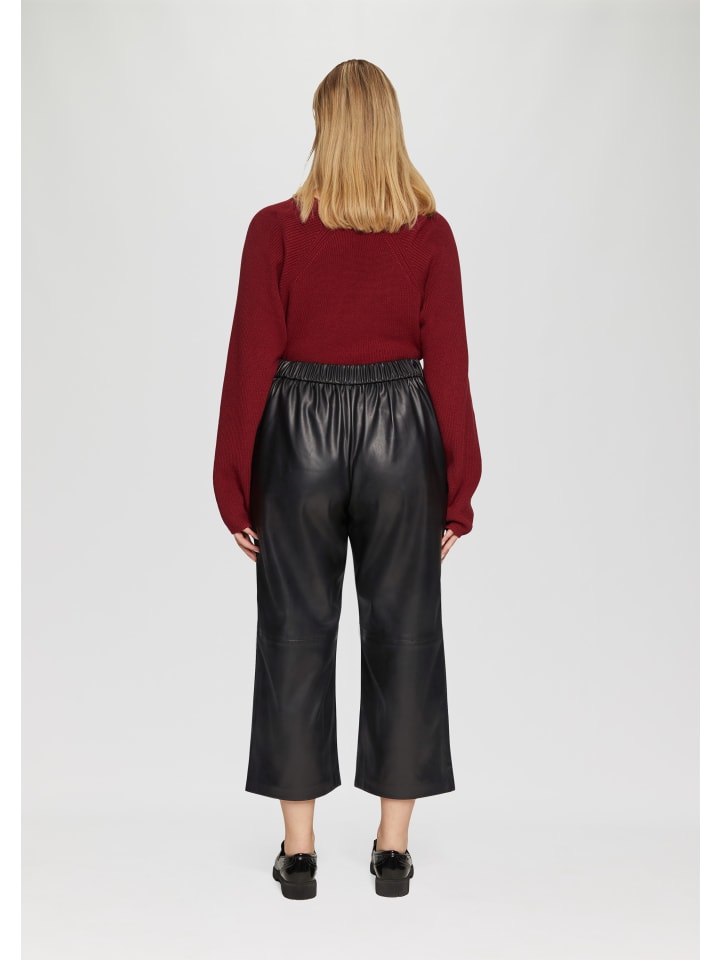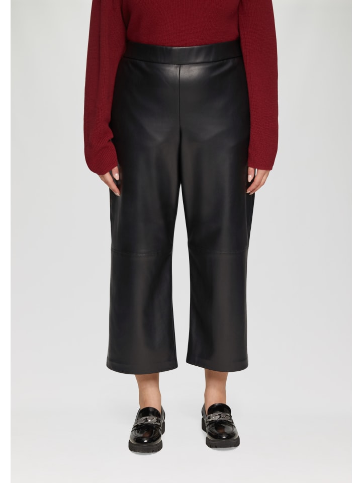 Эти стильные брюки-кюлоты из высококачественной искусственной кожи сочетают в себе повседневный комфорт и элегантный дизайн. Высокий эластичный пояс и практичные боковые карманы делают эти широкие брюки идеальным дополнением к повседневной жизни, сочетая изысканный кожаный образ.