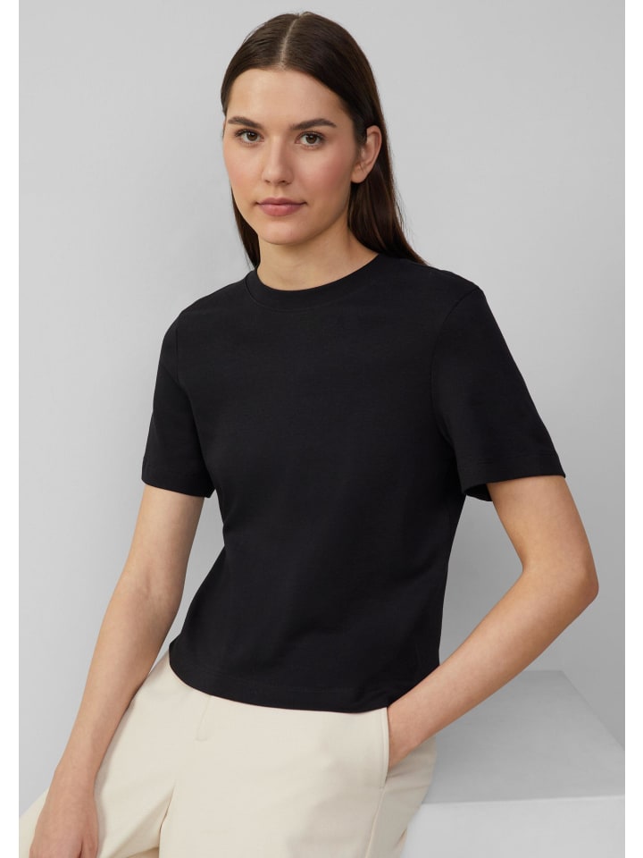 Ваш новый спутник для создания непринужденных повседневных образов: эта укороченная футболка из мягкого трикотажа интерлок с классическим круглым вырезом и свободным стандартным кроем. Неизменная базовая модель для универсальных сочетаний.