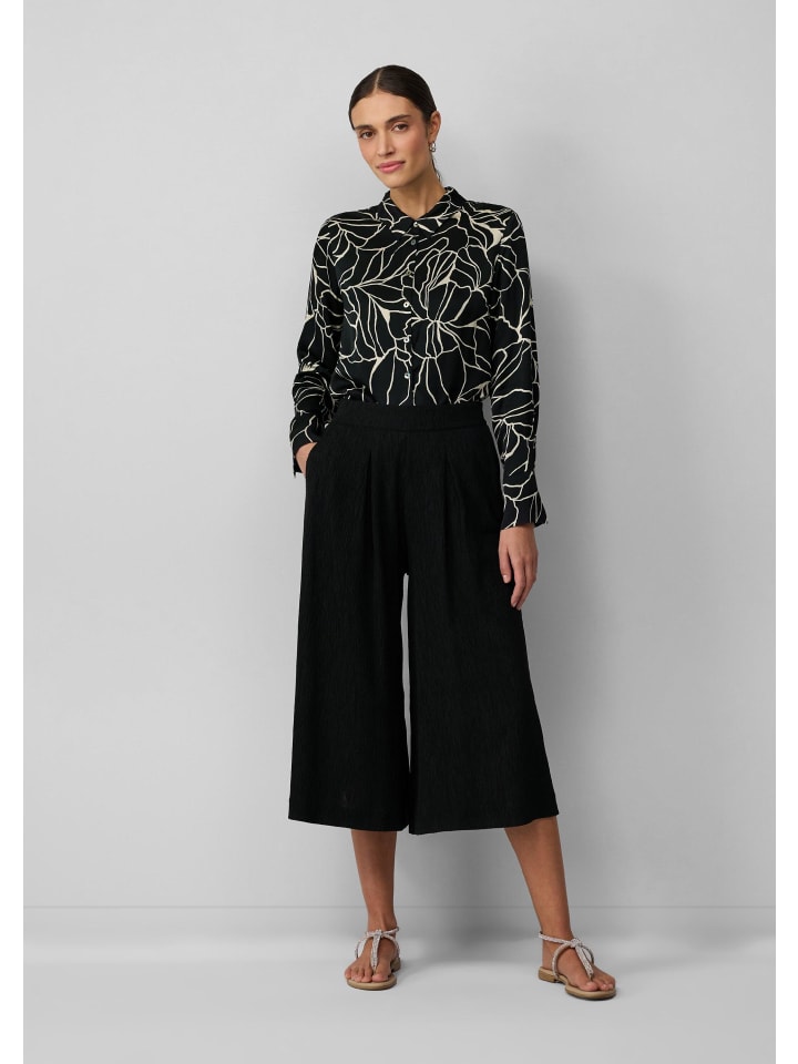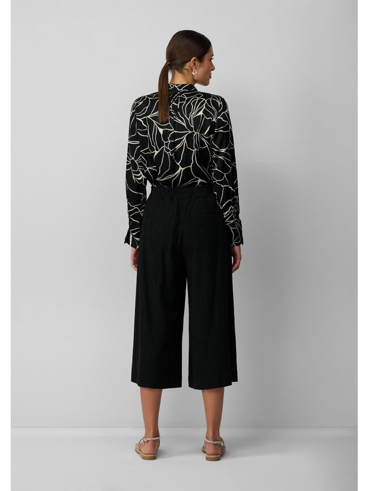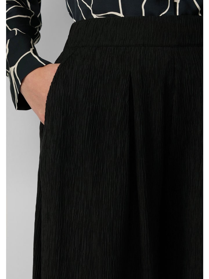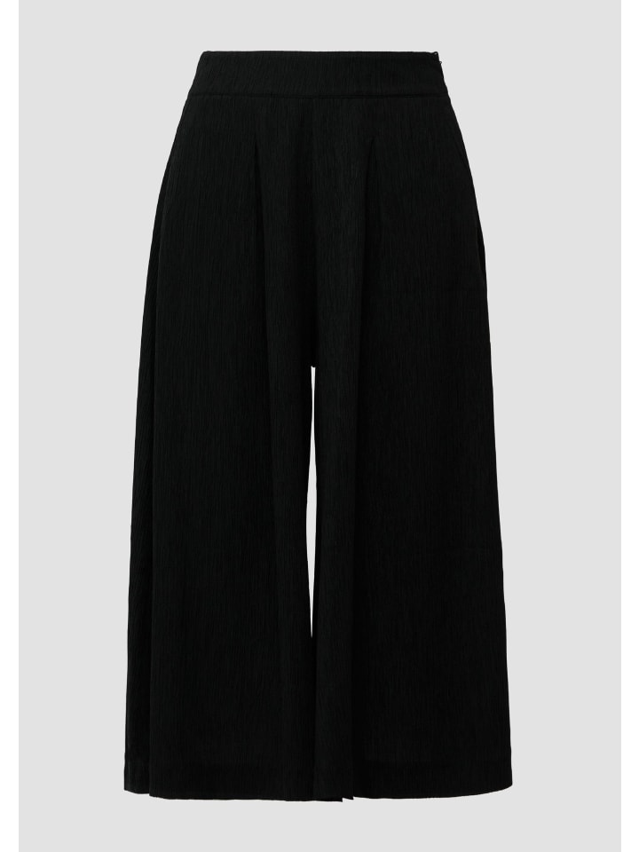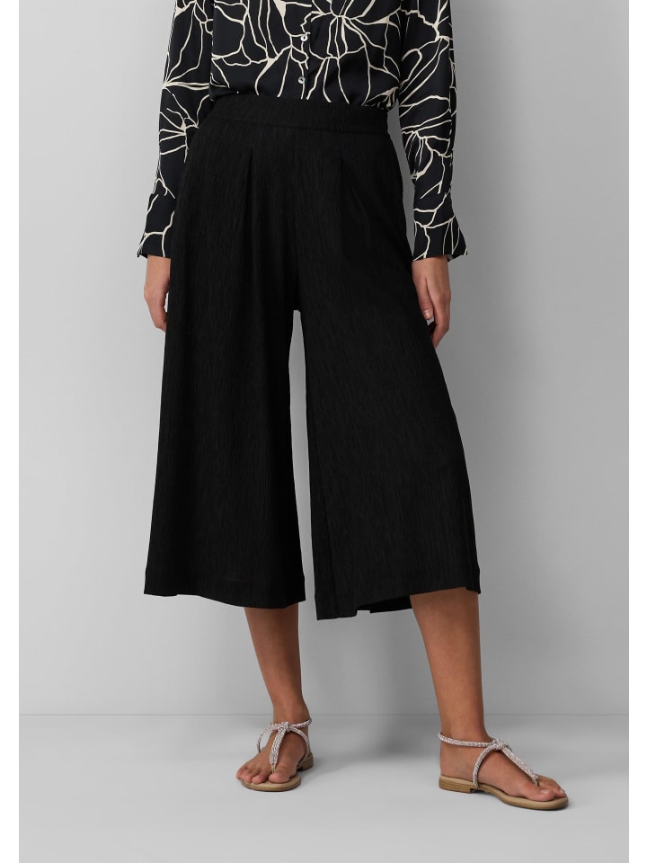 Уверенный и стильный: эти брюки-кюлоты с эффектом жатого кроя сочетают в себе современный широкий крой с изысканными складками. Потайная молния и боковые карманы подчеркивают четкий силуэт. Укороченная длина и классический крой делают их универсальным дополнением к вашему уверенному образу - от офиса до ужина.
