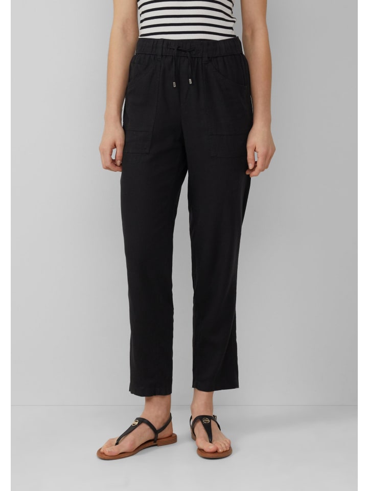 Легкие брюки из смесовой льняной ткани для повседневной носки летом! Эти зауженные книзу брюки станут вашим комфортным спутником в расслабленные дни. Будь то пикник в парке или кофе на балконе - вы всегда будете чувствовать себя стильно и комфортно.