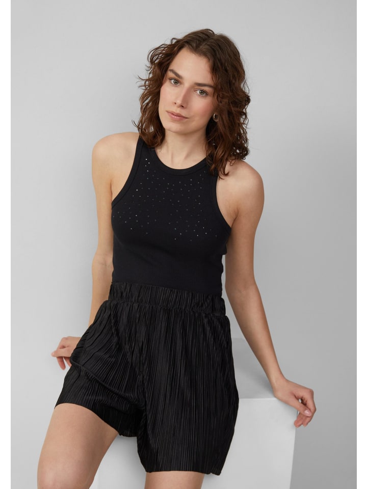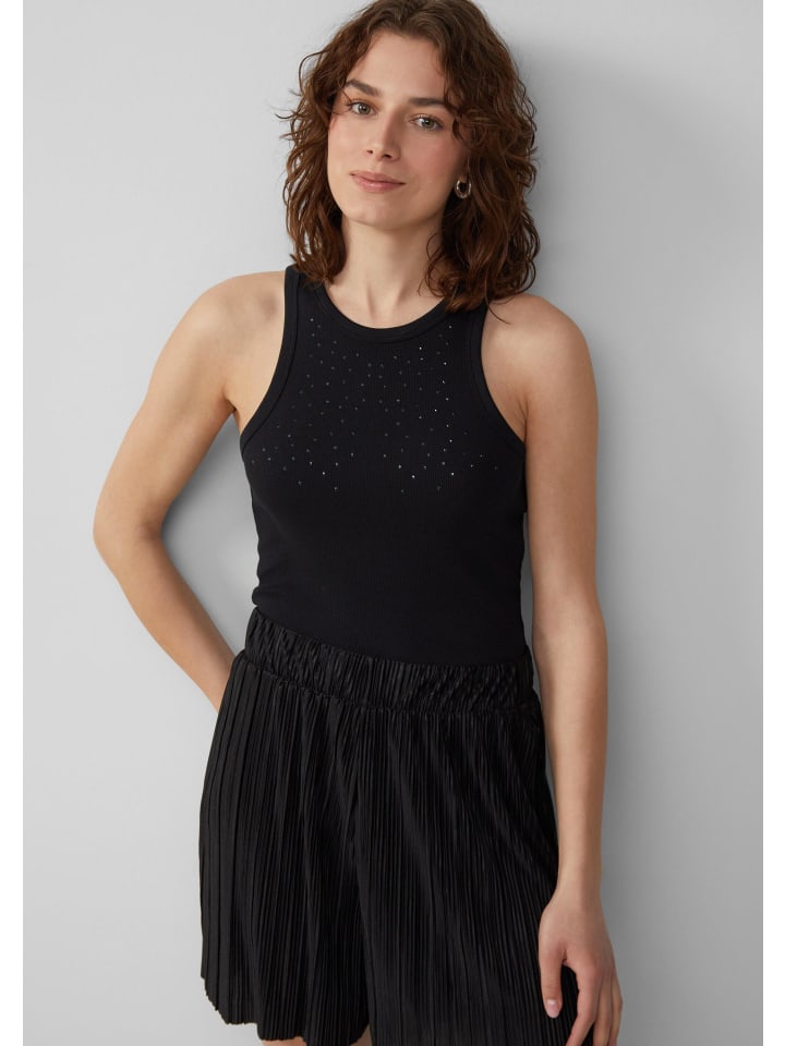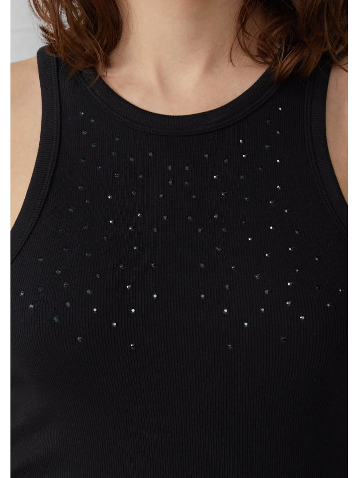 Ослепительная приманка для ваших нарядов! Эта майка в рубчик со сверкающими стразами идеально дополнит ваш любимый образ. Будь то в кафе или на спонтанной вечеринке - вы гарантированно будете блистать. Удобная и стильная одновременно!