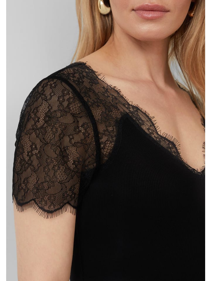 Ваша новая любимая вещь: эта элегантная футболка идеально сочетает в себе комфорт и стиль. V-образный вырез и кружевные детали добавляют женственности, а облегающий крой выгодно подчеркивает фигуру. Эта универсальная футболка подойдет как для деловых встреч, так и для вечерних мероприятий, подчеркнув ваш индивидуальный стиль с непреходящей элегантностью.