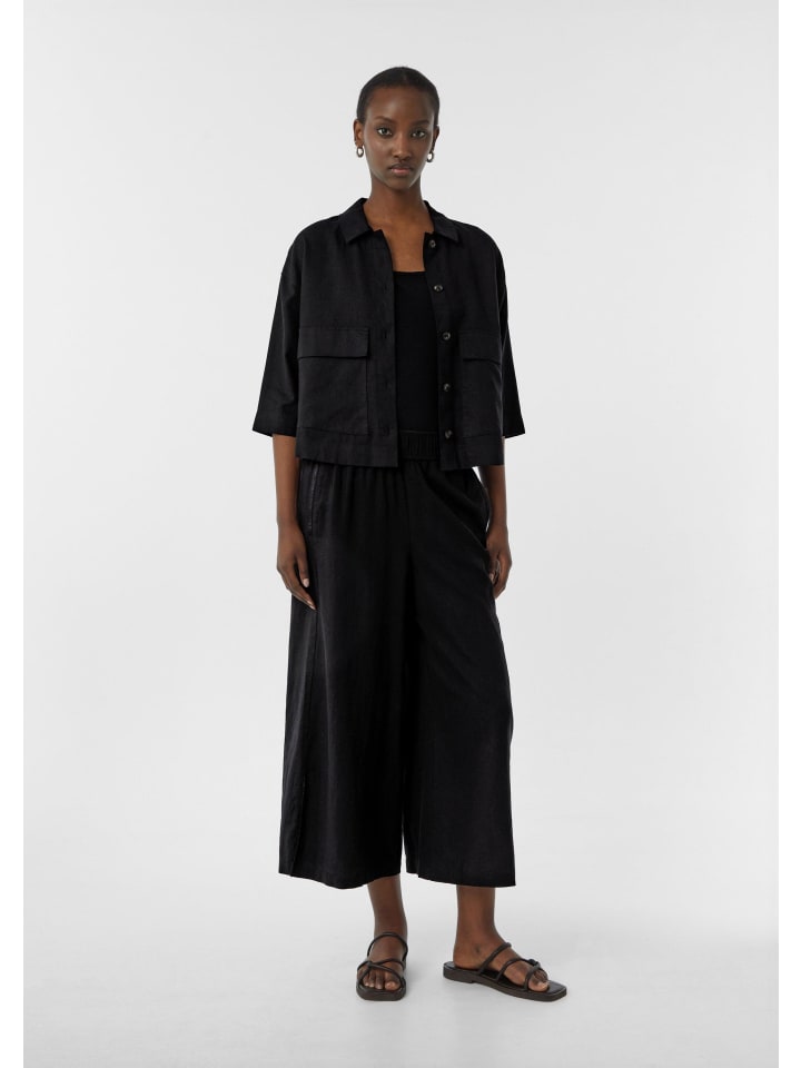 Откройте для себя идеальное сочетание комфорта и стиля в наших воздушных брюках-кюлотах из высококачественной льняной ткани. Эластичный пояс с высокой посадкой и свободный крой подчеркивают фигуру, а боковые разрезы по низу добавляют женственности. Эти брюки достаточно универсальны, чтобы их можно было сочетать с самыми разными образами - от повседневных до деловых - и они станут незаменимым дополнением к любому случаю. Насладитесь мягкой текстурой и непринужденным шиком этих модных брюк-кюлотов.