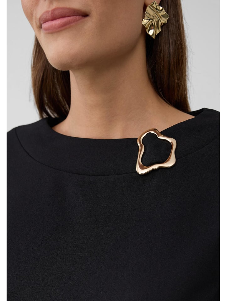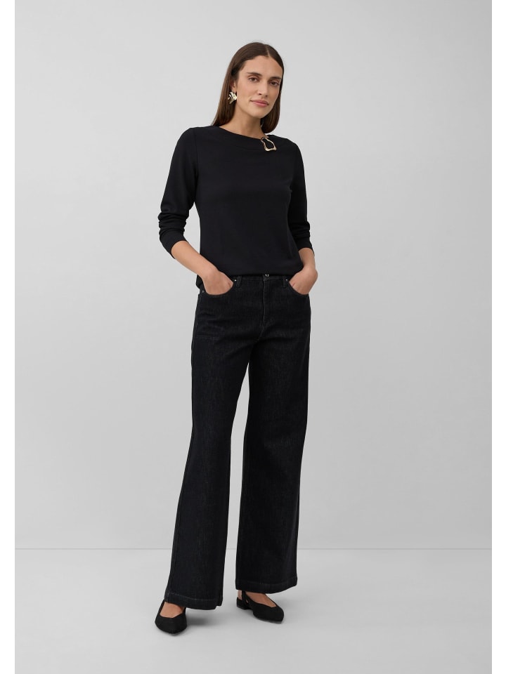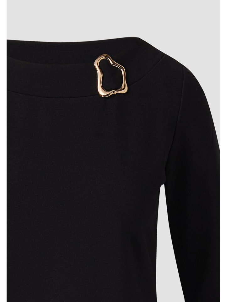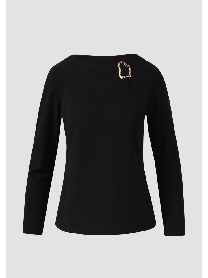 Элегантность и универсальность: эта рубашка с длинными рукавами из высококачественного трикотажа «интерлок» станет вашим стильным спутником на все случаи жизни. Благодаря круглому вырезу и стандартному крою она подчеркнет вашу индивидуальность. Изящная брошь станет эксклюзивным акцентом - от деловых встреч до торжественных мероприятий.