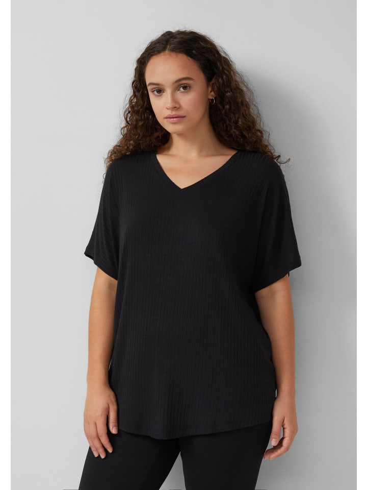Свободный и модный: эта свободная рубашка с V-образным вырезом и рукавами «летучая мышь» идеально подходит вашему образу жизни. Мягкая рубчатая ткань приятна к телу, а закругленный подол создает непринужденный образ. Идеально подходит для стильных повседневных образов!