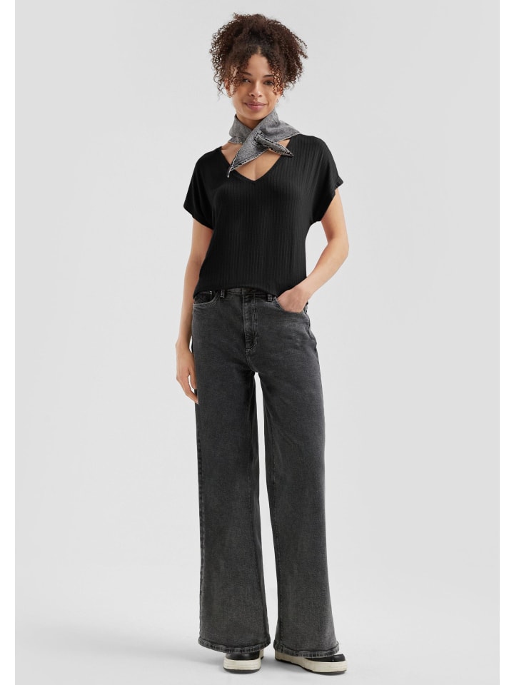 Ваш стильный апгрейд: свободная рубашка свободного кроя с классным ребристым узором. V-образный вырез и рукава «летучая мышь» для непринужденного образа. Мягкая и эластичная ткань - идеально подходит для прохладных дней и модных образов. Свободный крой с закругленным подолом для максимального комфорта.