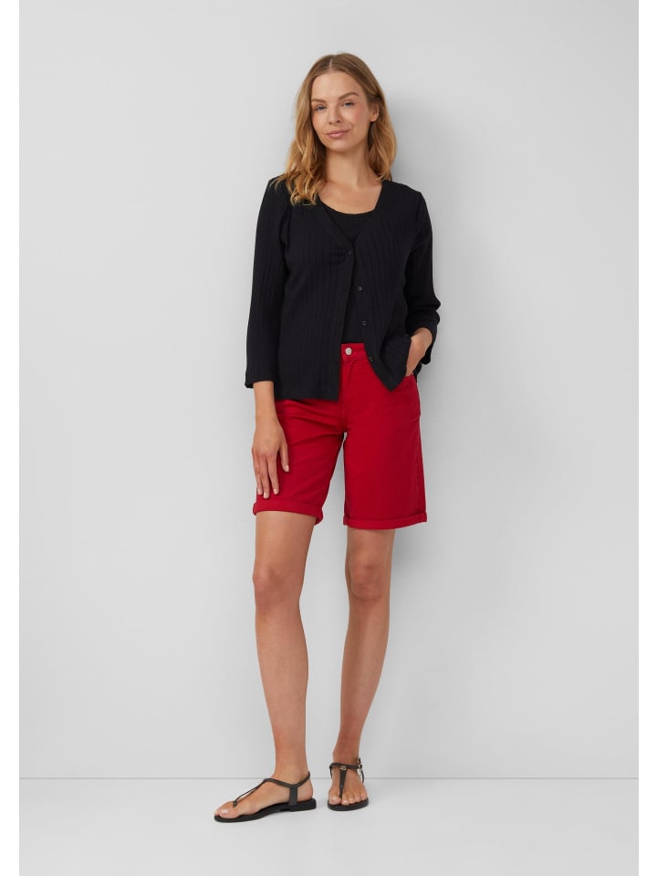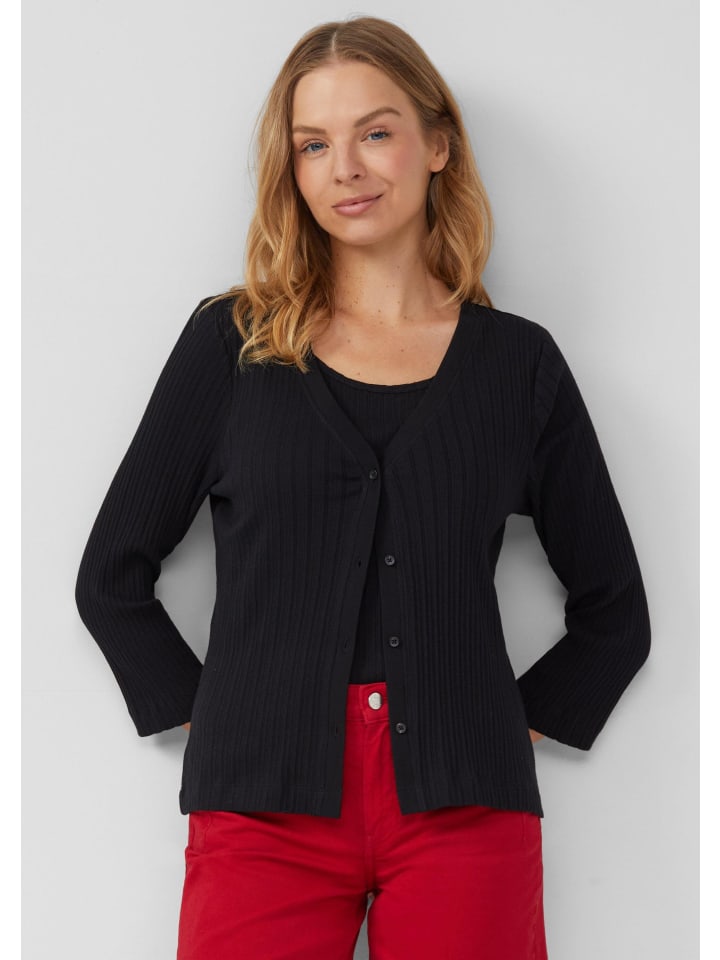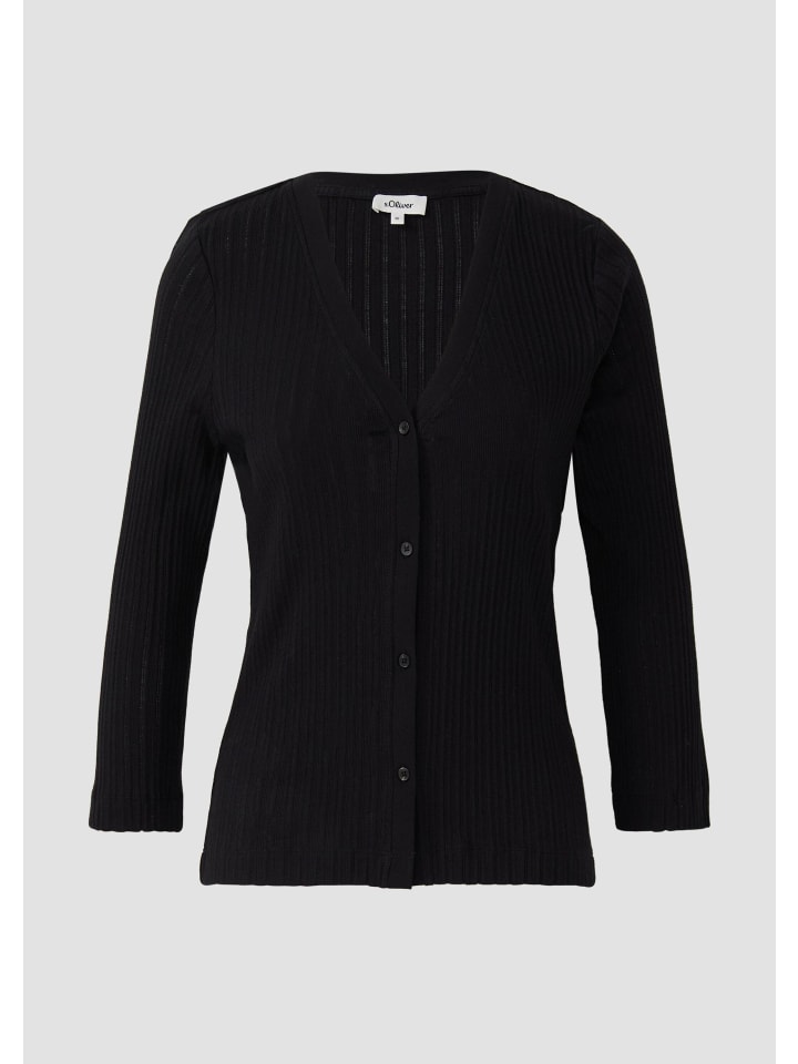 Ваша новая трикотажная рубашка из мягкой рубчатой ткани имеет V-образный вырез и рукава 3/4. Ее сдержанная элегантность делает ее идеальным дополнением к непринужденным и повседневным образам.