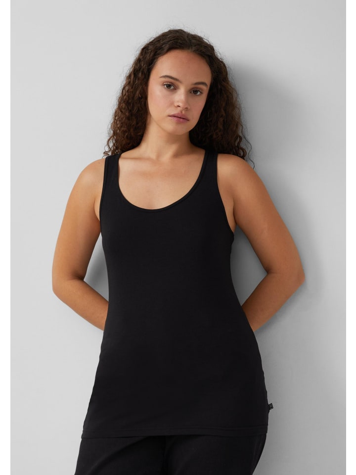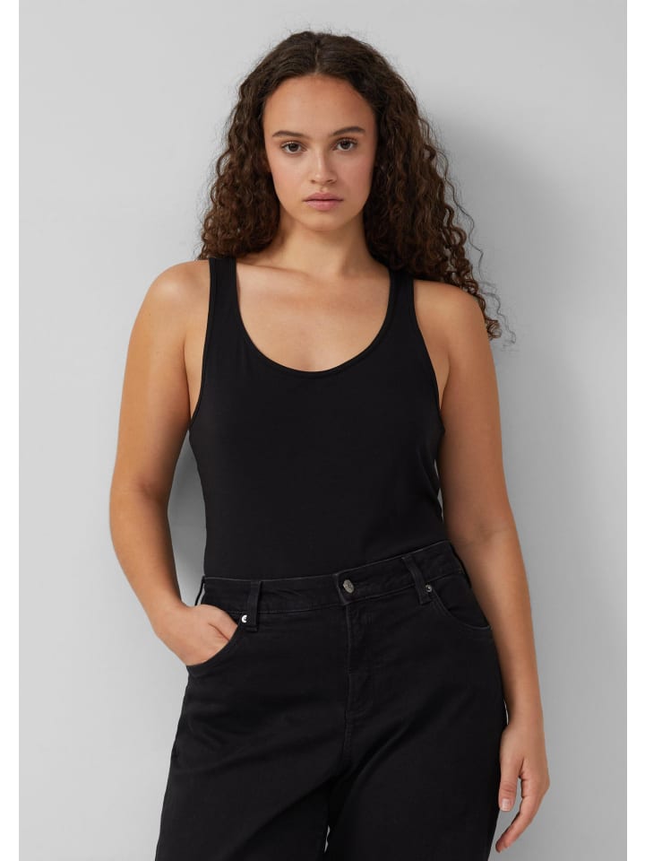 Этот топ без рукавов из мягкого хлопкового трикотажа станет вашим идеальным спутником для расслабленных дней. Круглый вырез и облегающий крой подчеркнут вашу фигуру. Кант добавит стильный штрих к этой базовой модели для вашего повседневного образа.