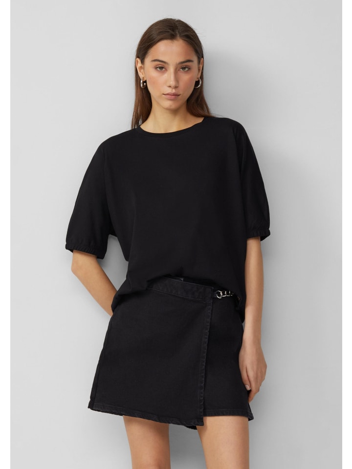 Ваш новый любимый спутник: свободная футболка с эластичными манжетами. Идеально подходит для стильных образов и расслабленного отдыха. Мягкий трикотаж и свободный крой обеспечивают максимальный комфорт. Стильная и простая модель.