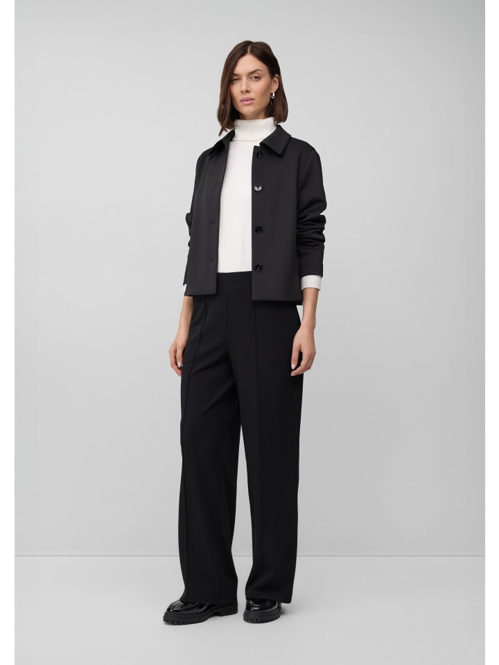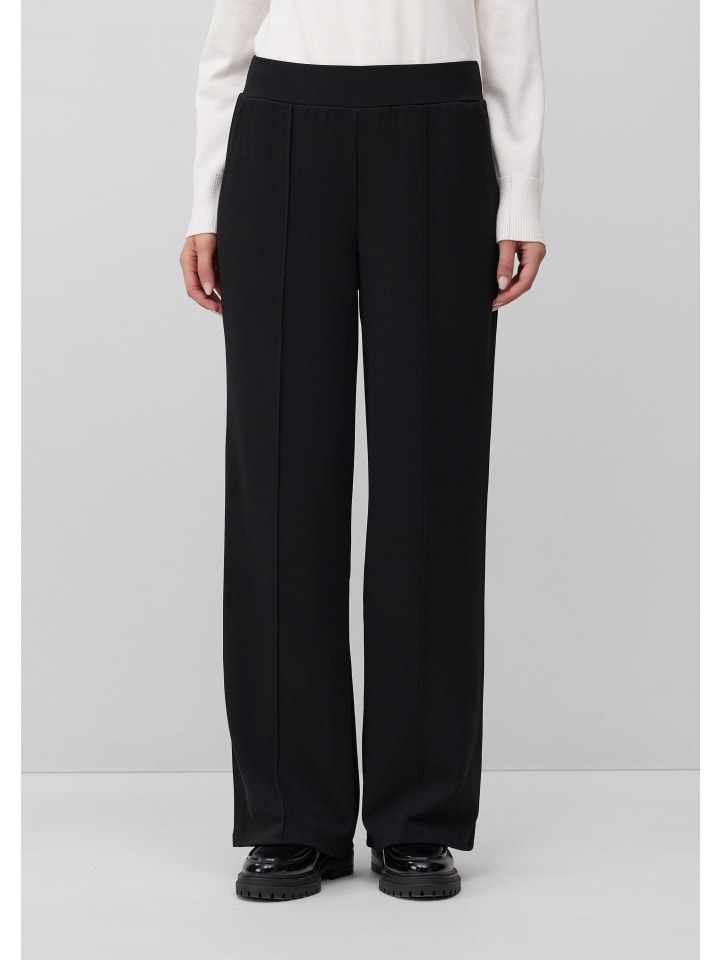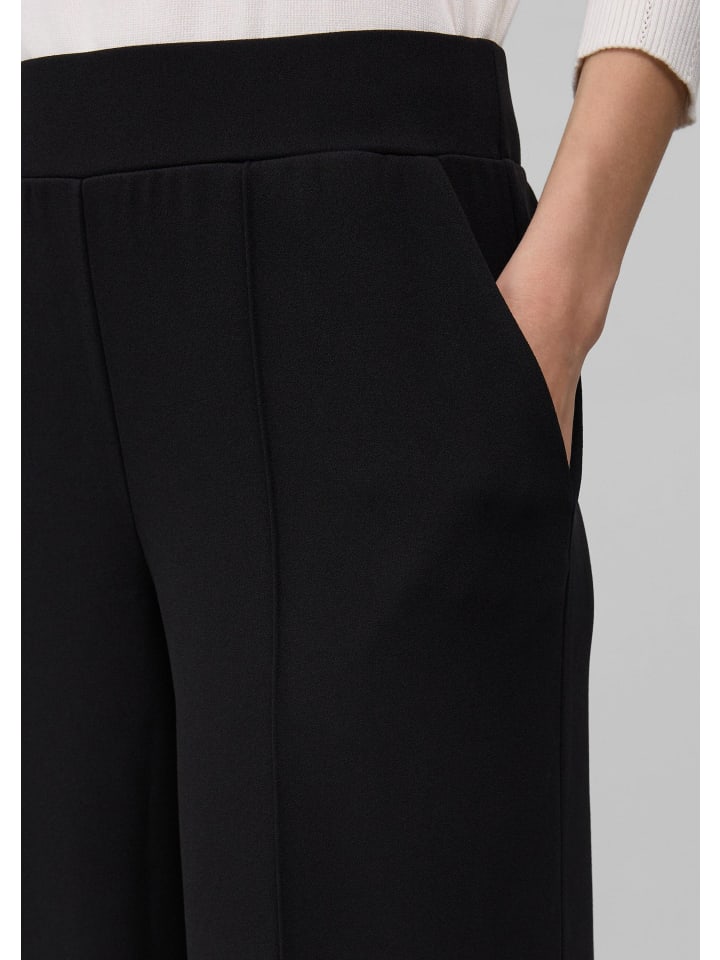 Стильная элегантность и современный комфорт: эти высококачественные брюки широкого кроя впечатляют струящимся трикотажным крепом и четкими защипами. Высокий эластичный пояс и практичные боковые карманы сочетают комфорт с классическим силуэтом. Идеально подходят для уверенного образа, как в офисе, так и на ужине.