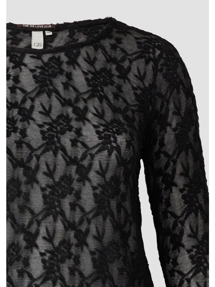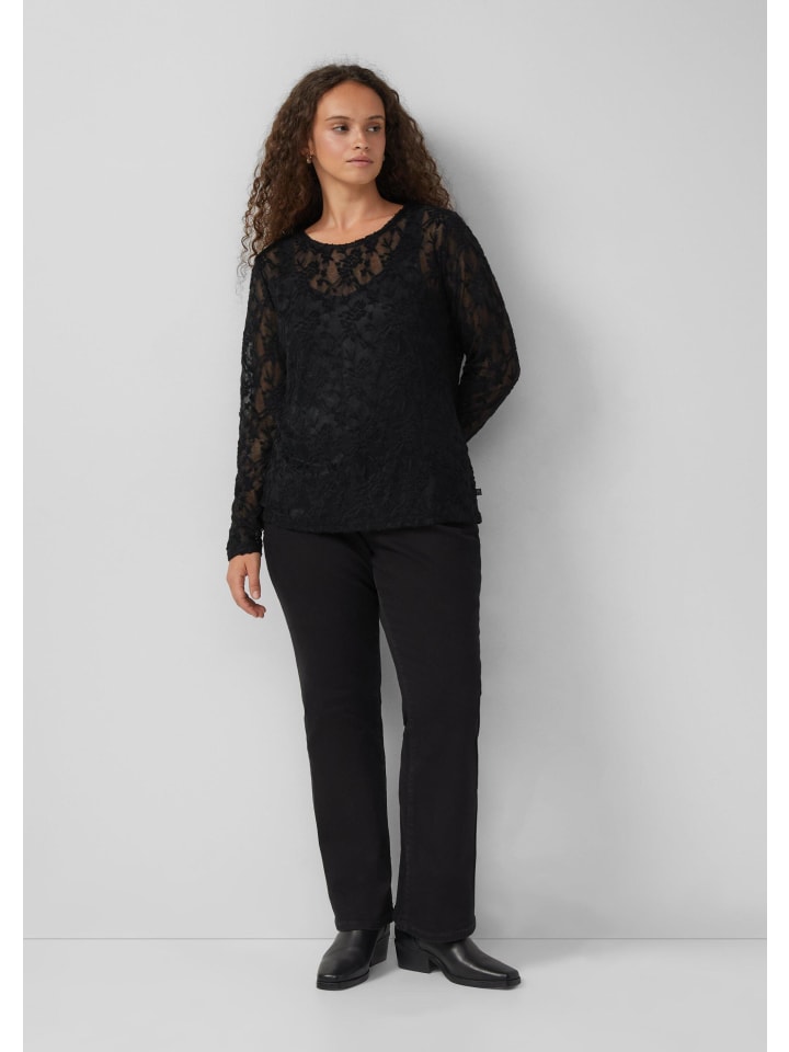 Ваш новый спутник для расслабленных и стильных моментов: этот топ средней длины с длинными рукавами из нежного кружева впечатляет своей полупрозрачностью и мягкостью. Круглый вырез и облегающий крой идеально подчеркнут вашу женственность.