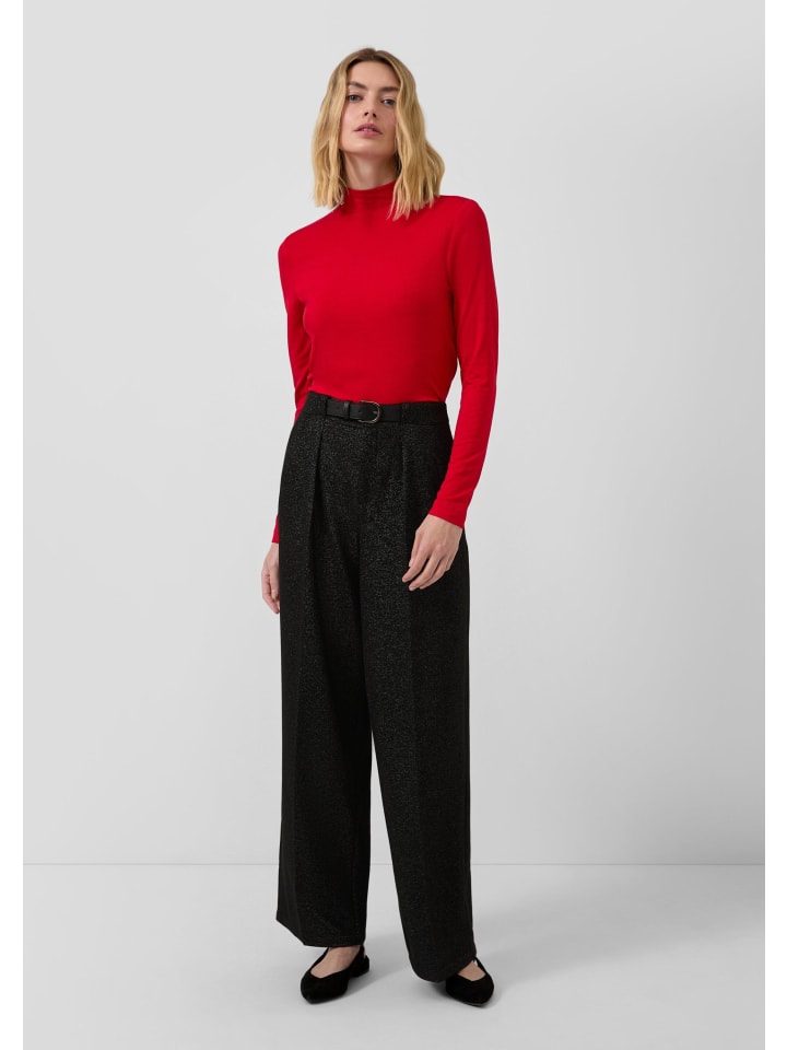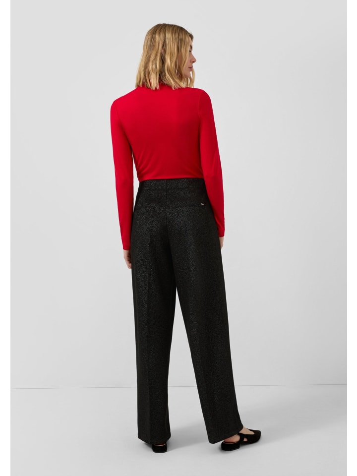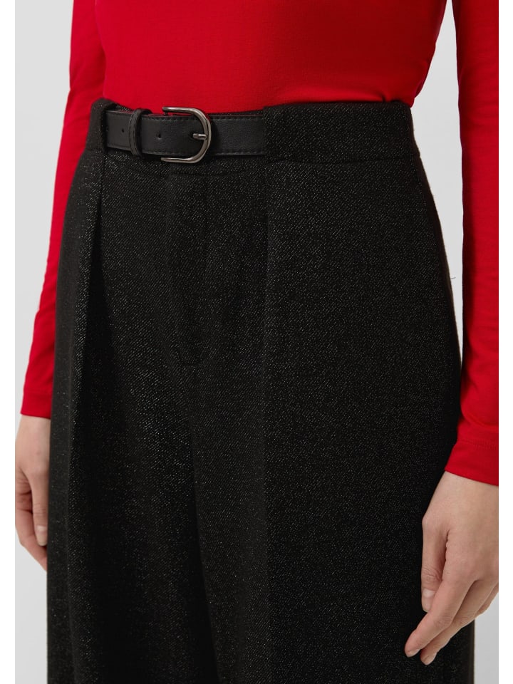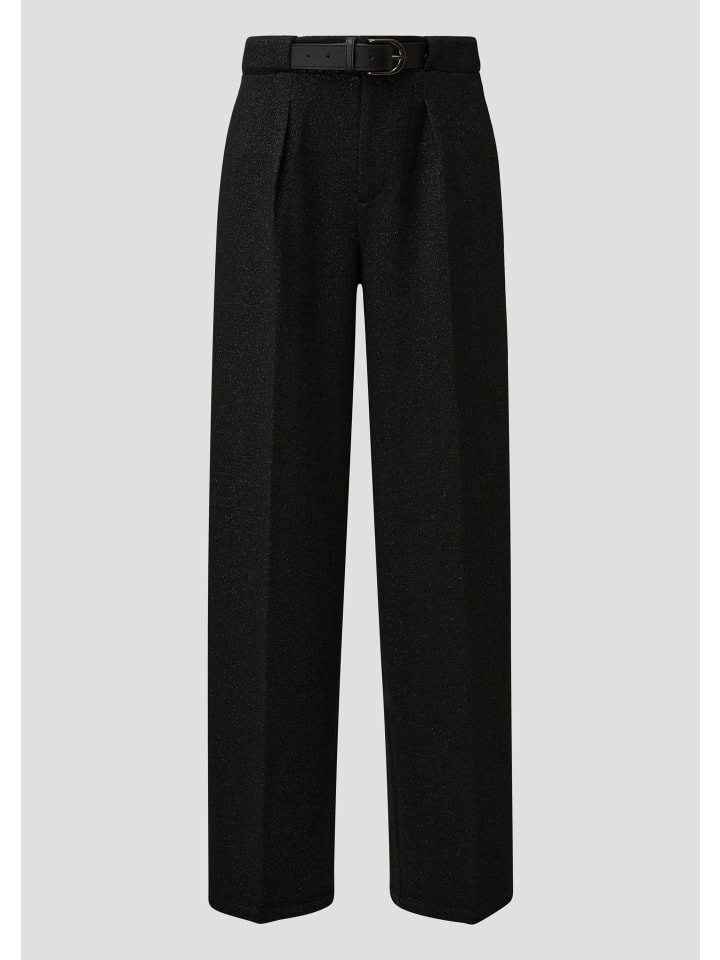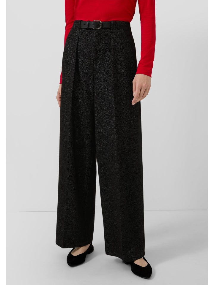 Брюки с высокой талией и плиссировкой, отделанные мерцающей блестящей пряжей, с интегрированным поясом, имитирующим кожу. Элегантный широкий крой и практичные карманы делают их идеальным дополнением для особых случаев.