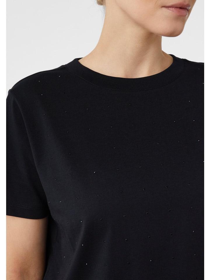Гламурный повседневный шик: эта футболка прямого кроя из джерси сочетает в себе непринужденный комфорт и сверкающие детали. Классический круглый вырез горловины привлекает внимание благодаря изящным аппликациям из стразов. Высококачественный хлопок гарантирует комфорт. Идеально подходит для повседневной носки и торжественных случаев, от повседневного до вечернего.