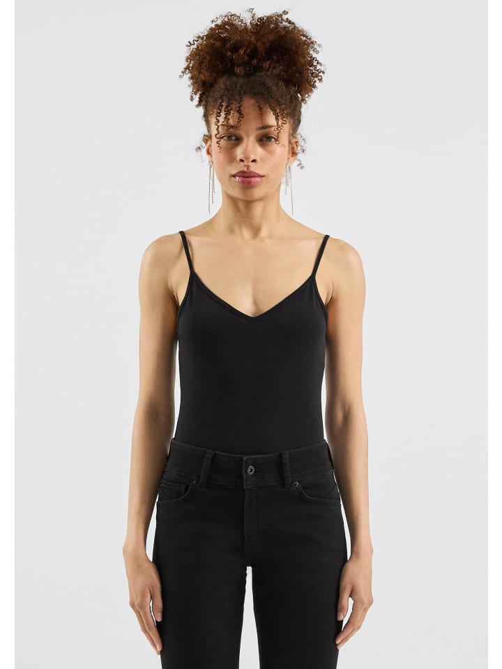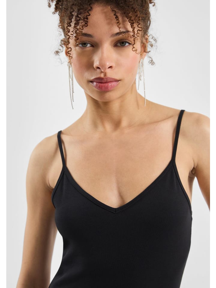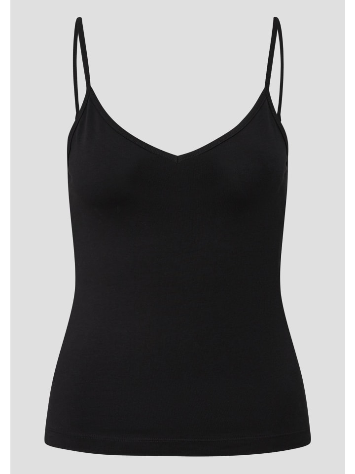Ваш новый любимый базовый предмет гардероба: этот эластичный топ на тонких бретельках из мягкого трикотажа идеально садится по фигуре. V-образный вырез и облегающий крой делают его универсальным и незаменимым предметом гардероба для расслабленных летних дней или в качестве многослойного образа.