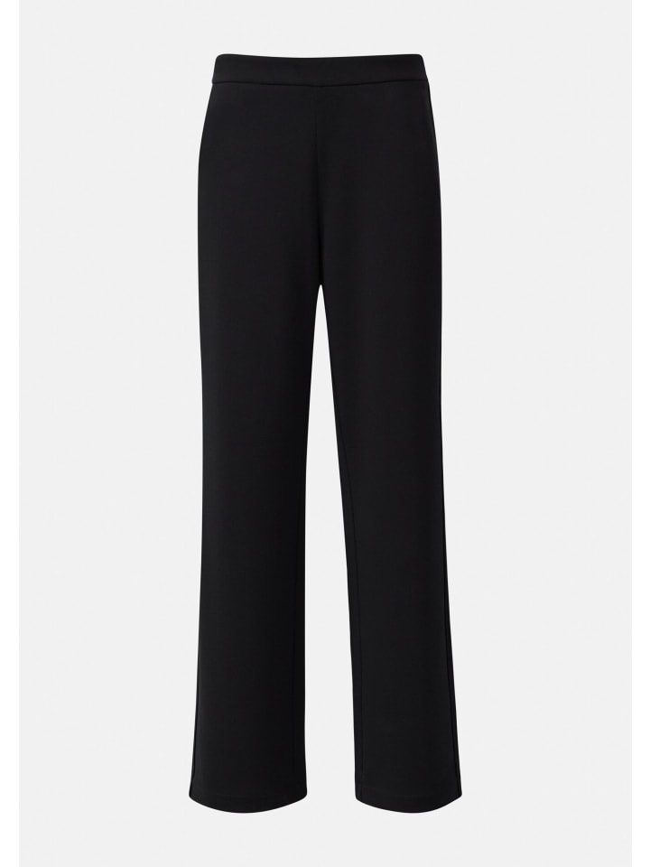 Элегантность и комфорт: эти брюки широкого кроя из приятной ткани «скуба» впечатляют своим непринужденным силуэтом. Эластичный пояс средней посадки и практичные боковые карманы делают их идеальным компаньоном для расслабленных дней - будь то отдых дома или отпуск. Полуширокий крой подчеркивает вашу фигуру и достаточно универсален, чтобы сочетаться с другими вещами. Создайте спортивный образ с кроссовками или женственный с блузкой и сандалиями.
