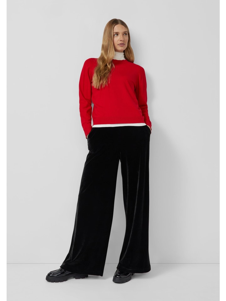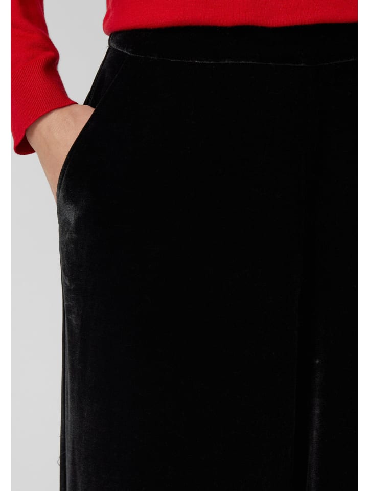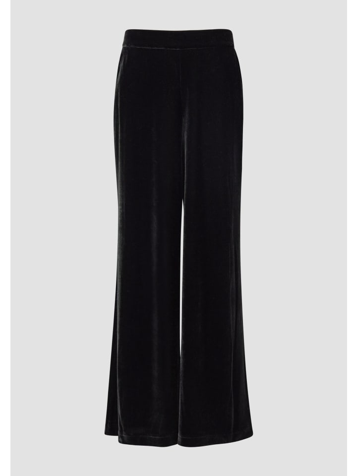 Эти струящиеся бархатные брюки с высоким поясом на резинке создают элегантный образ. Свободный крой и широкие штанины обеспечивают максимальный комфорт, а практичные боковые карманы облегчают повседневную жизнь. Роскошный материал и однотонный дизайн делают эти брюки универсальным дополнением к гардеробу.