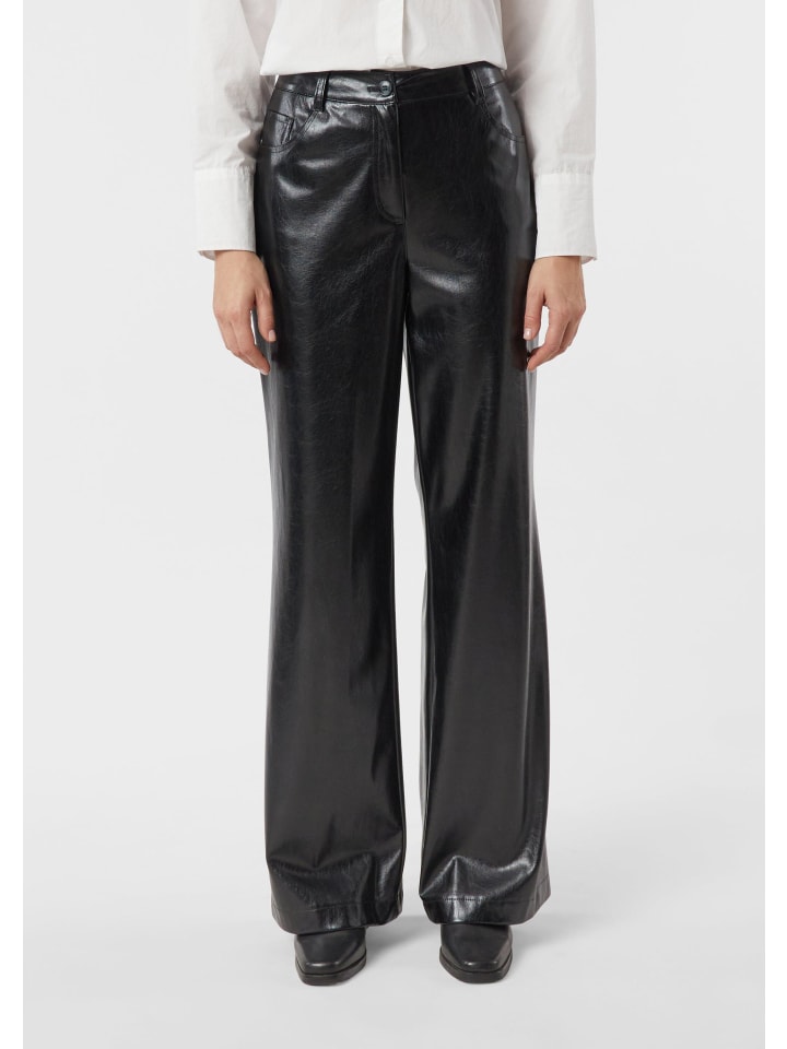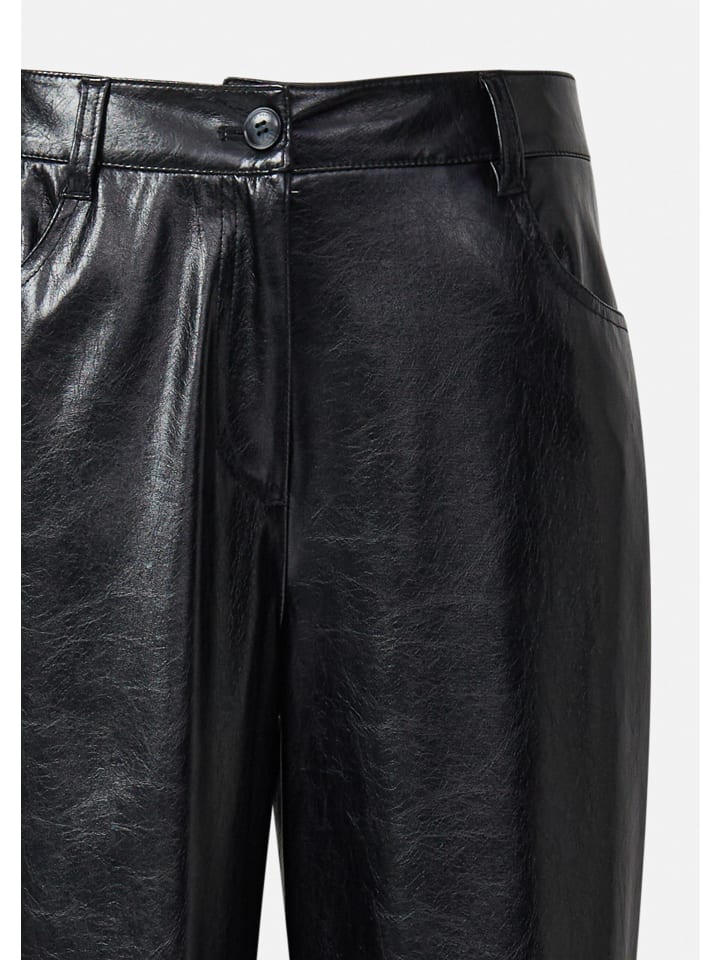 Эти элегантные брюки широкого кроя в современном кожаном стиле сочетают в себе женственный шик и непринужденную повседневную одежду. Свободный крой и широкие штанины создают плавный силуэт, а высокая талия подчеркивает фигуру. Благодаря слегка эластичному материалу они гарантируют максимальный комфорт. Шлевки для ремня и практичные боковые карманы дополняют продуманный дизайн. Сочетайте брюки с кроссовками для создания городского образа или с блузкой и туфлями-лодочками для деловых целей - универсальные варианты для любого случая.