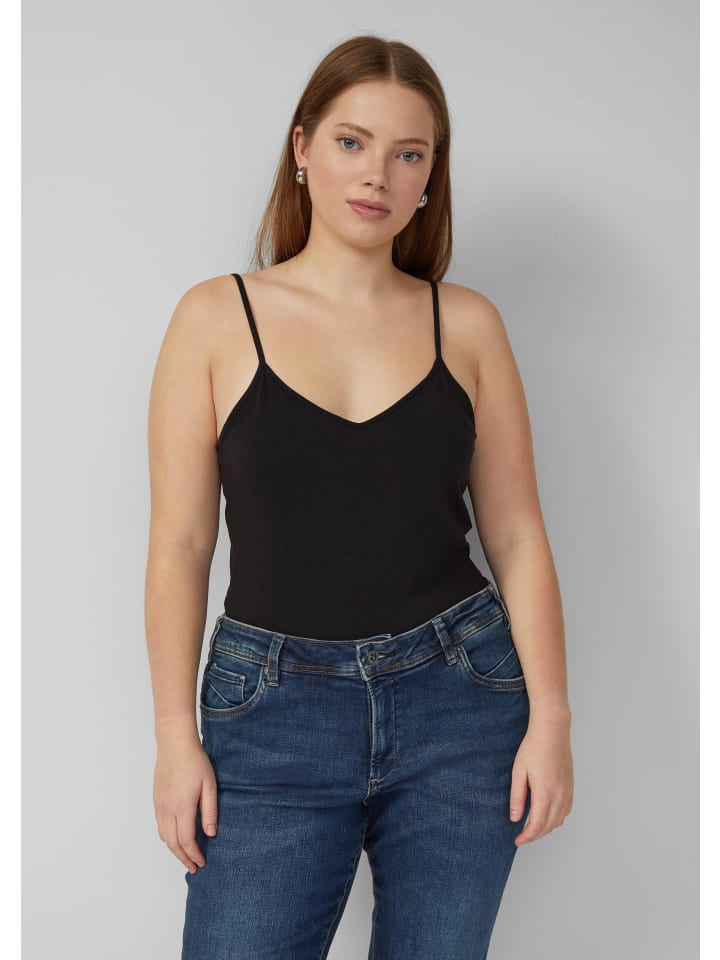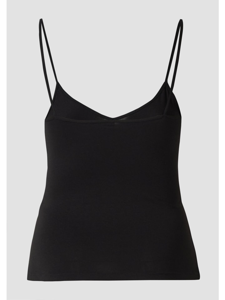 Ваш новый любимый топ для жарких дней: этот эластичный топ на тонких бретельках с V-образным вырезом и облегающим кроем идеально сидит и невероятно мягкий на ощупь. Мягкий трикотаж не сковывает движений, а кант добавляет стильный штрих. Будь то пляжный отдых или прогулка по городу - этот топ без рукавов всегда будет сидеть идеально.