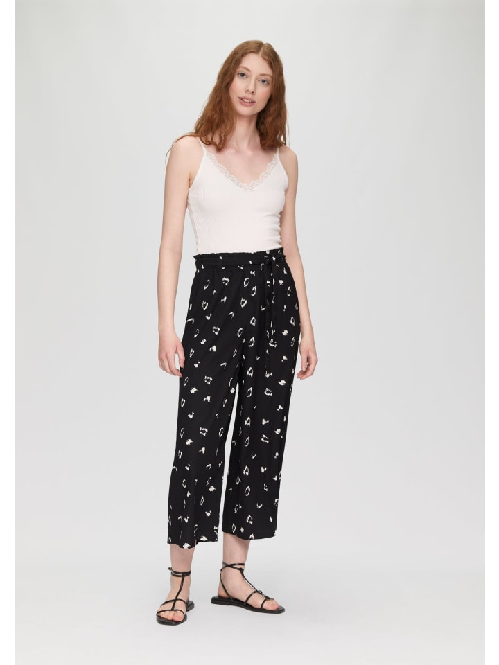 Повседневный и модный стиль: эти брюки с узором и кулиской - идеальный выбор для стильных образов. Широкий крой и высокая талия обеспечивают комфорт, а принт по всей поверхности добавляет стильный штрих. Идеально подходит для расслабленных дней и неформальных прогулок.