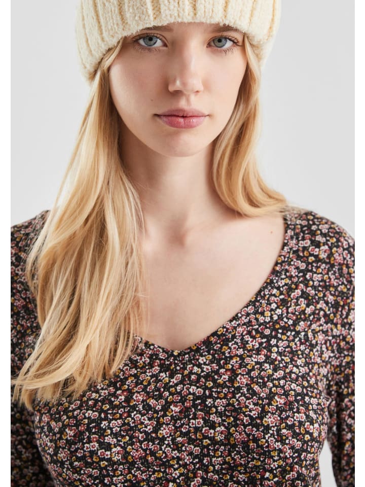 Ваш новый универсальный вариант для повседневных образов: эта рубашка с V-образным вырезом в рубчик и цветочным принтом по всей поверхности впечатляет мягкой вискозной смесью и облегающим кроем. Эластичная ткань приятна к телу и делает любой образ по-настоящему привлекательным.