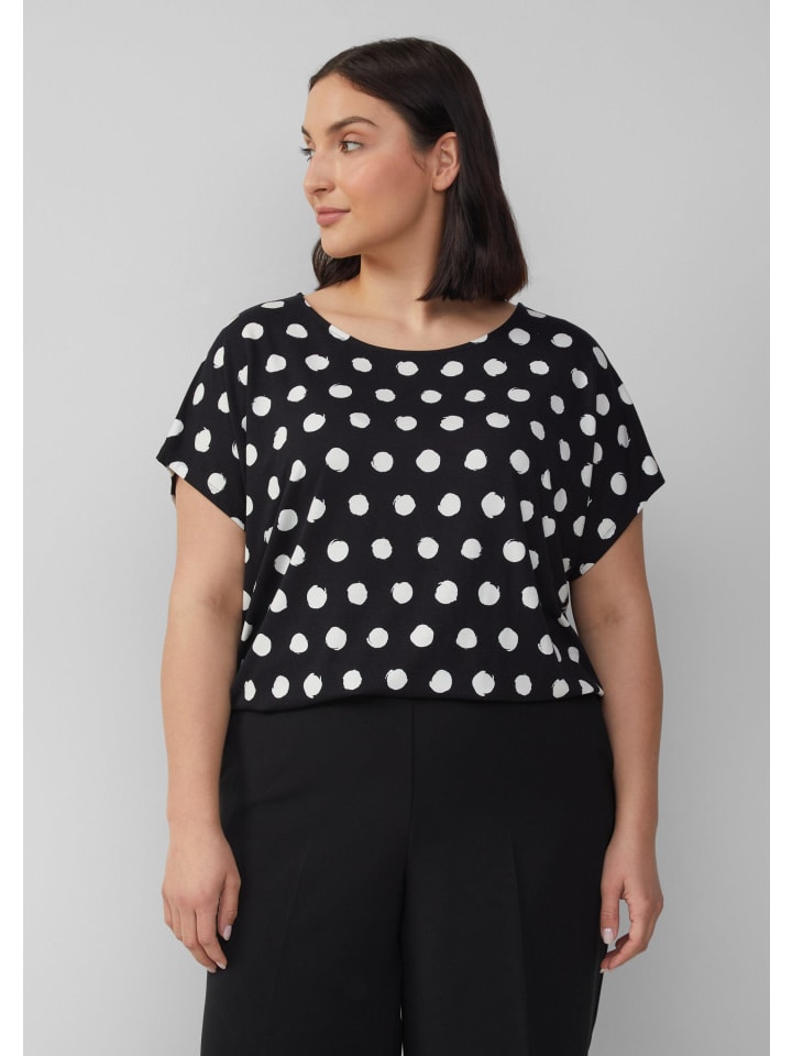 Мягкая и струящаяся: эта футболка с узором из смесовой вискозы - ваш новый фаворит для расслабленных дней. Благодаря круглому вырезу и свободному крою она идеально подходит для вашего непринужденного образа жизни. Как насчет спонтанного пикника?