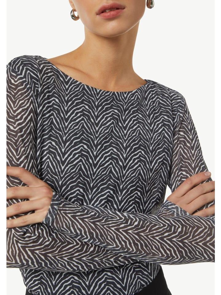 Изысканная прозрачность: эта сетчатая рубашка с длинными рукавами и сборками по бокам станет вашим новым акцентом. Круглый вырез горловины и облегающий крой подчеркнут ваш силуэт, а принт по всей поверхности добавит современный штрих. Трикотажная подкладка обеспечит комфорт. Носите ее с джинсами в непринужденном стиле или надевайте с блейзером для вечернего выхода.