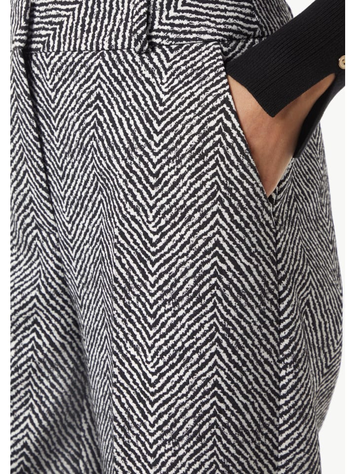 Жаккардовые брюки с широкими штанинами: эффектный элемент делового стиля. Высококачественная ткань и сплошной узор создадут модный образ в офисе. Свободный крой обеспечивает комфорт, а боковые карманы - практичность. Сочетайте брюки с простой блузкой для создания элегантного образа или со свитером для более повседневного образа.
