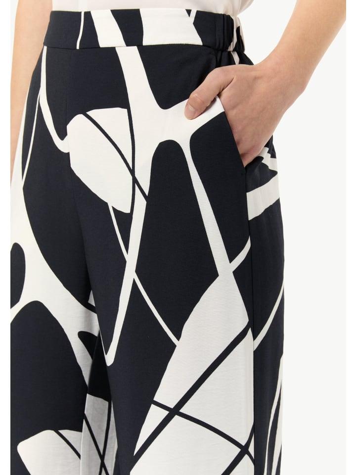 Женственная легкость: эти брюки-палаццо с узором из смесовой вискозы красиво драпируются по фигуре. Потайная молния и эластичный пояс обеспечивают комфорт, а широкие брючины не стесняют движений. Эти брюки свободного кроя можно носить как в повседневной жизни, так и в более элегантной обстановке.