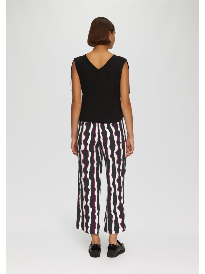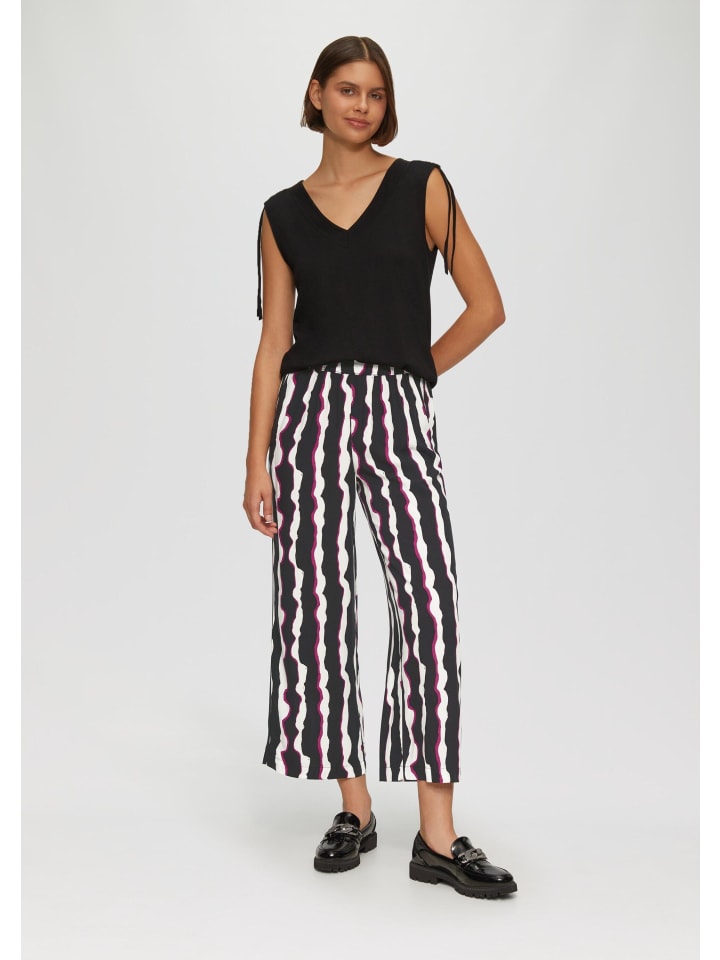 Эти воздушные и легкие брюки-кюлоты из мягкой вискозы с удобным эластичным поясом и практичными боковыми карманами. Женственный принт по всей поверхности и свободный крой делают эти брюки непринужденным спутником на каждый день.