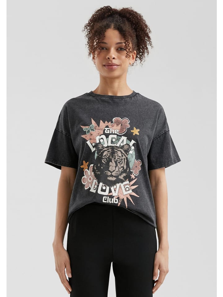 Ваша свободная рубашка на каждый день! Мягкий трикотаж, стильный принт спереди и свободный крой делают ее идеальным компаньоном. Отдыхаете ли вы или выходите на улицу, вы легко и стильно дополните любой образ.