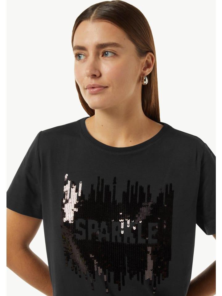 Модный акцент: Эта футболка с пайетками добавит нотку гламура вашему повседневному образу. Классический крой из мягкого хлопкового джерси подчеркивает фигуру, а круглый вырез с добавлением эластана обеспечивает максимальный комфорт. Сочетайте ее с джинсами для создания непринужденного повседневного образа или с юбкой для создания шикарного вечернего наряда. Универсальная вещь, которая обязательно должна быть в вашем гардеробе!