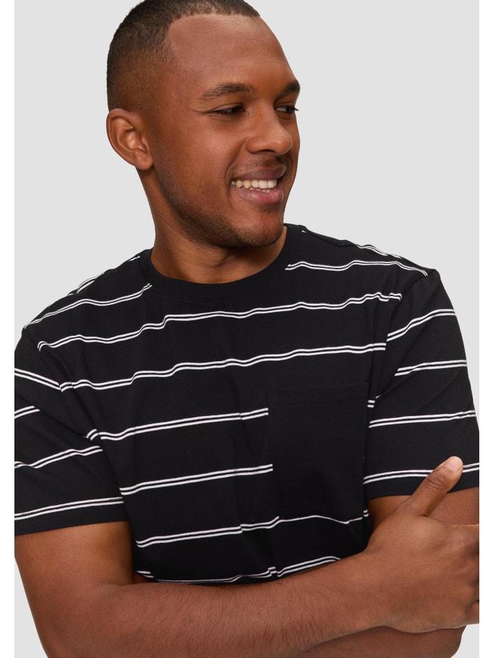 Полосатый образ для крутых парней! Эта полосатая футболка из хлопкового джерси с нагрудным карманом станет вашим повседневным спутником. Мягкая ткань и классический круглый вырез горловины сделают ее идеальной базовой вещью для вашего непринужденного стиля.