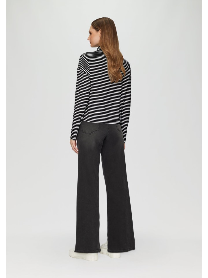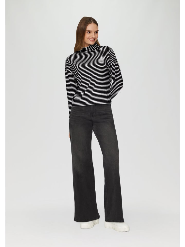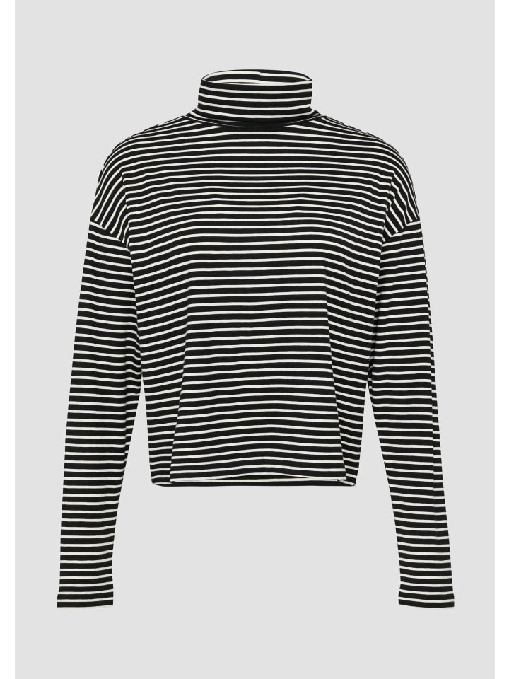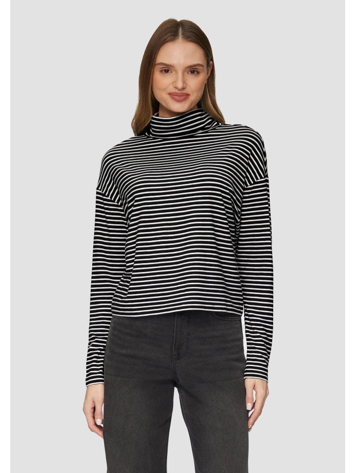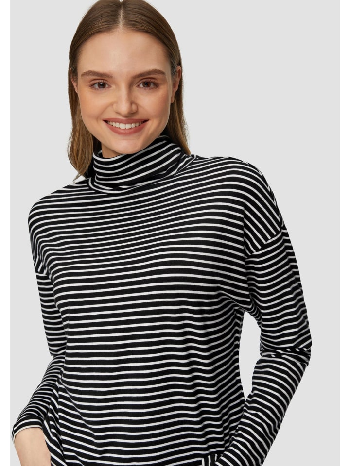 Расслабьтесь в течение дня: эта полосатая трикотажная рубашка с длинными рукавами и водолазкой впечатляет своим непринужденным кроем. Классика с женственным оттенком, она дополнит любой повседневный образ и обеспечит стильный комфорт.