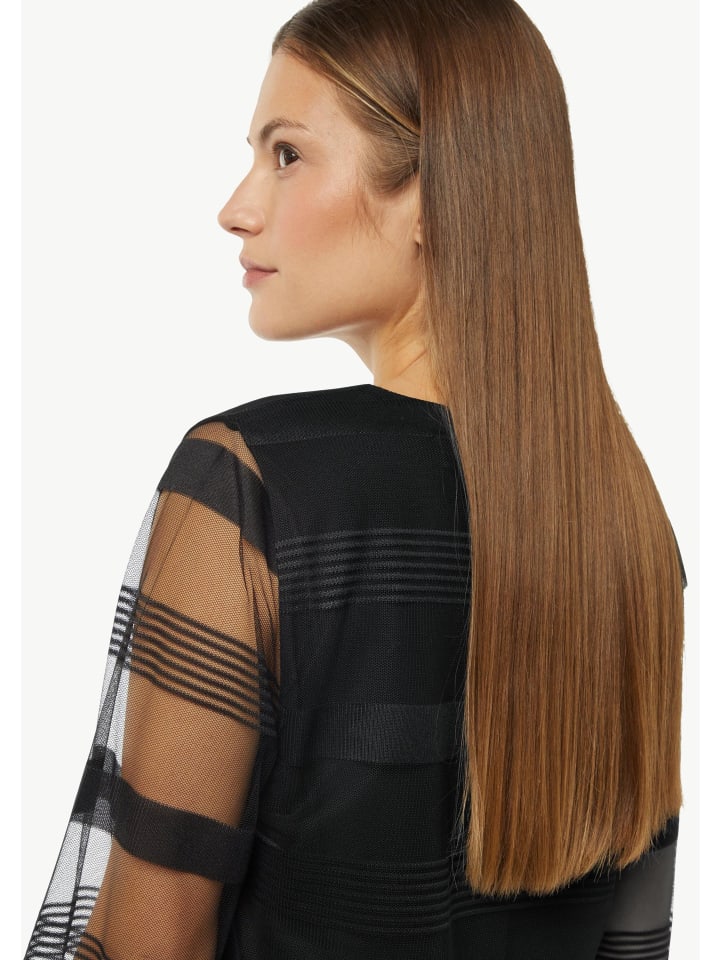 Сетка и полоски: эта футболка с длинными рукавами - ваш новый незаменимый предмет гардероба на каждый день. Круглый вырез горловины и прозрачная сетчатая ткань придают ей современный вид. Трикотажная подкладка обеспечит вам комфорт. Носите ее с джинсами с высокой талией для создания непринужденного образа или наденьте под блейзер для создания более изысканного образа.