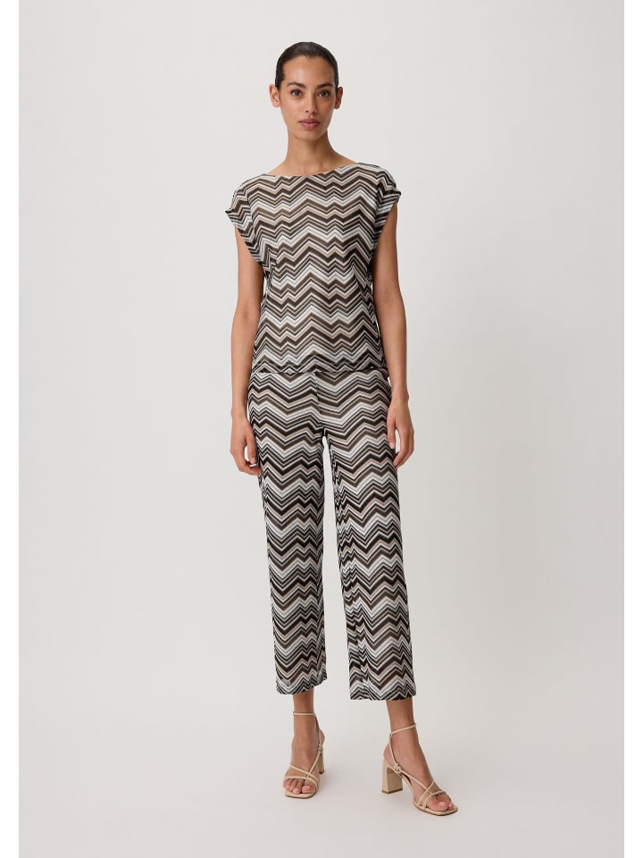 Ваш новый фаворит на лето: эти воздушные брюки-кюлоты с зигзагообразным узором поражают свободным широким кроем и исключительным комфортом. Плотная подкладка обеспечивает незаметность, а эластичный пояс гарантирует свободу движений. Сочетайте эти брюки прямого кроя с рубашками или блузками для создания повседневных образов и создайте свой собственный летний образ.
