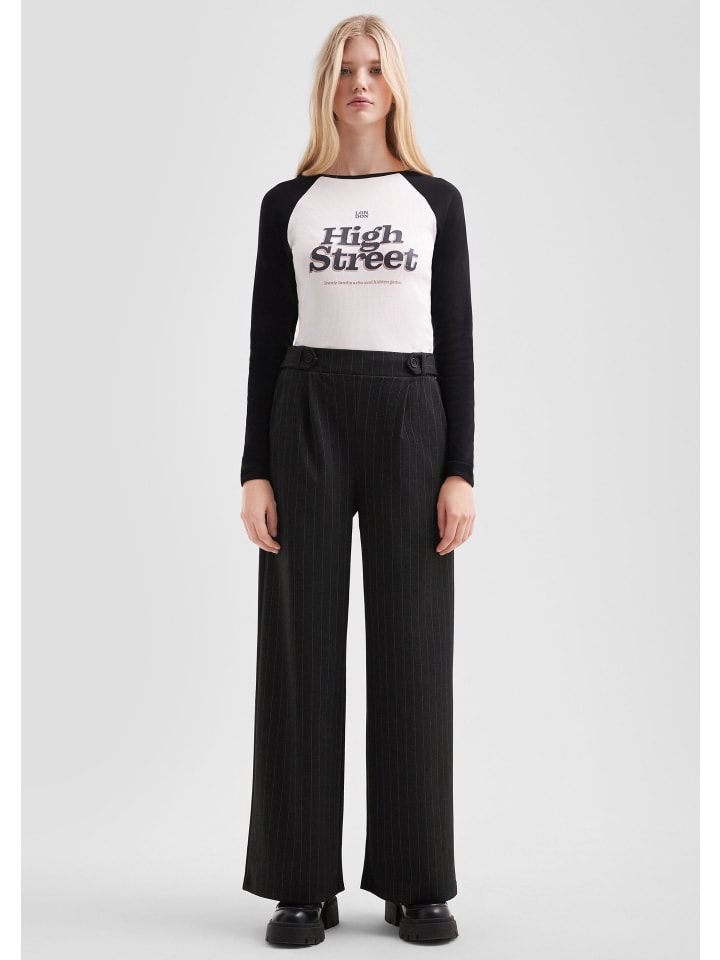 - В полоску, с эластичным поясом и декоративной пуговицей