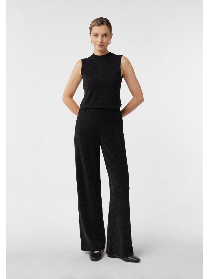 Одновременно гламурные и удобные: эти широкие брюки из джерси очаровывают своей блестящей нитью. Эластичный пояс обеспечивает максимальный комфорт, а прямой, широкий крой создает элегантный силуэт. Эффектная модель, идеально подходящая для торжественных случаев, которую можно комбинировать с различными вариантами.